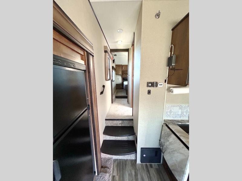With any Reflection 150 Series fifth wheel by Grand Design you will enjoy the ease of towing behind a short bed half-ton truck thanks to the 90 degree turning radius swivel pin box. The Universal All-In-One docking station, LP Quick Connect, and One-Touch electric awning with LED light make setting up and packing up easy for those weekenders or full-timers that like to move around to see the countryside. Inside you will find the bedroom is complete with a panoramic window, queen bed, and plenty of storage for your clothes and such. The Arctic 4-Seasons Protection package allows you to camp anywhere and anytime of the year. Come choose your favorite model today!
