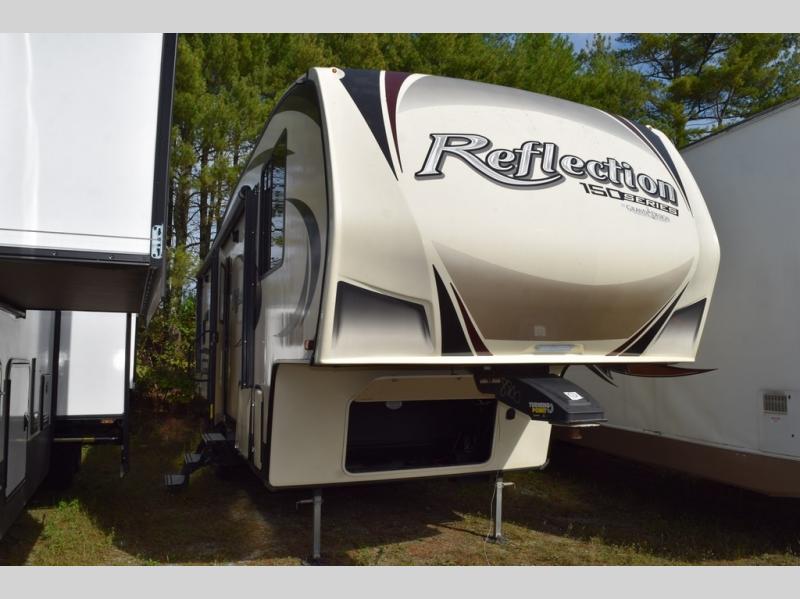 With any Reflection 150 Series fifth wheel by Grand Design you will enjoy the ease of towing behind a short bed half-ton truck thanks to the 90 degree turning radius swivel pin box. The Universal All-In-One docking station, LP Quick Connect, and One-Touch electric awning with LED light make setting up and packing up easy for those weekenders or full-timers that like to move around to see the countryside. Inside you will find the bedroom is complete with a panoramic window, queen bed, and plenty of storage for your clothes and such. The Arctic 4-Seasons Protection package allows you to camp anywhere and anytime of the year. Come choose your favorite model today!