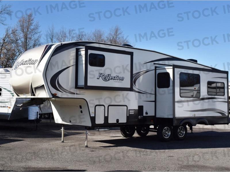 This Refection 29RS fifth wheel is perfect for a couple that enjoys traveling the countryside with their own accommodations including several luxury items just like at home. If you can imagine cooking in a gourmet kitchen with a center island and farm sink, plus watching a 40" TV with fireplace below then this model is for you. Your spouse may even be watching the TV from the theatre seats or napping on the tri-fold sofa. When it's time for bed, you can get cleaned up in the radius shower, and sleep on a queen bed. You will find plenty of storage throughout for your clothes, dry goods, games, and blankets, plus there is an exterior unobstructed pass-through compartment that allows you to store larger items. It's time to get moving and start living the dream!