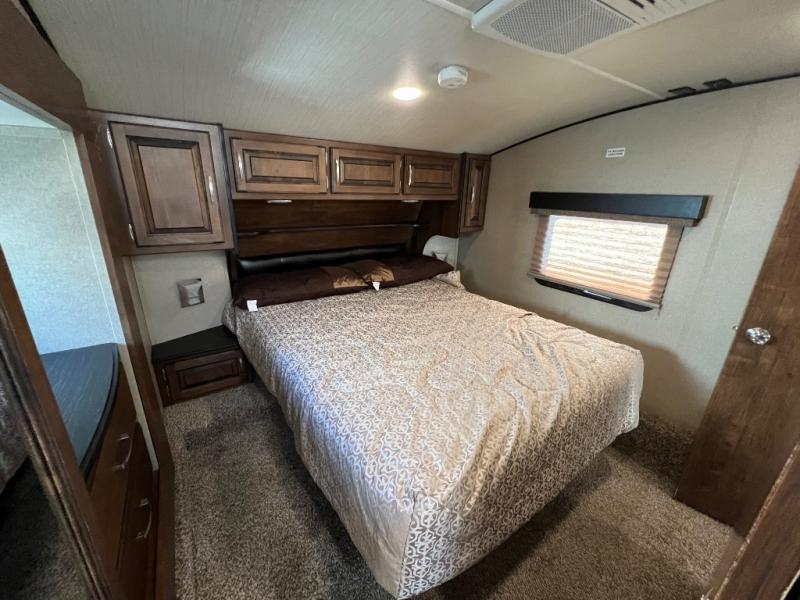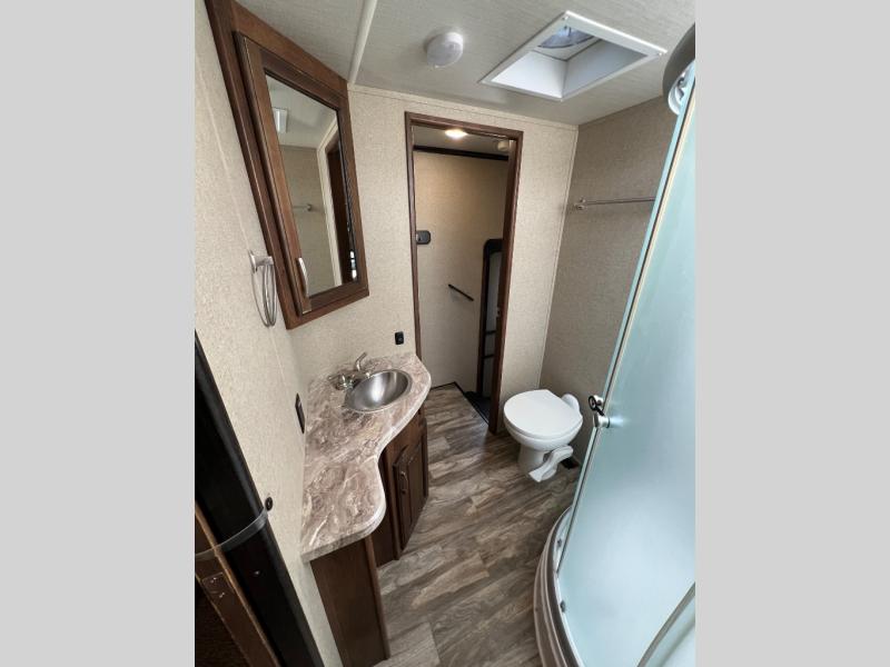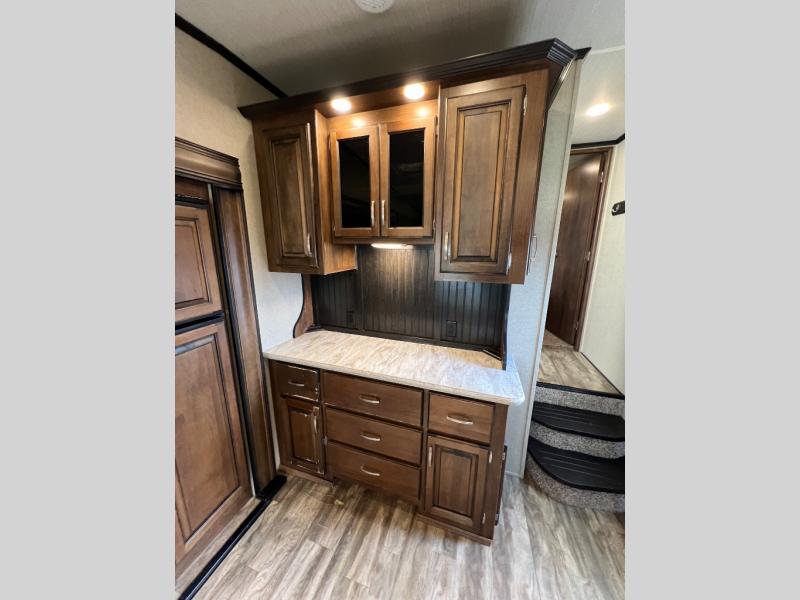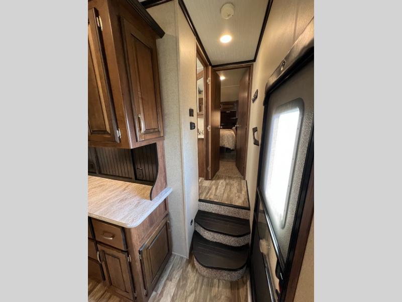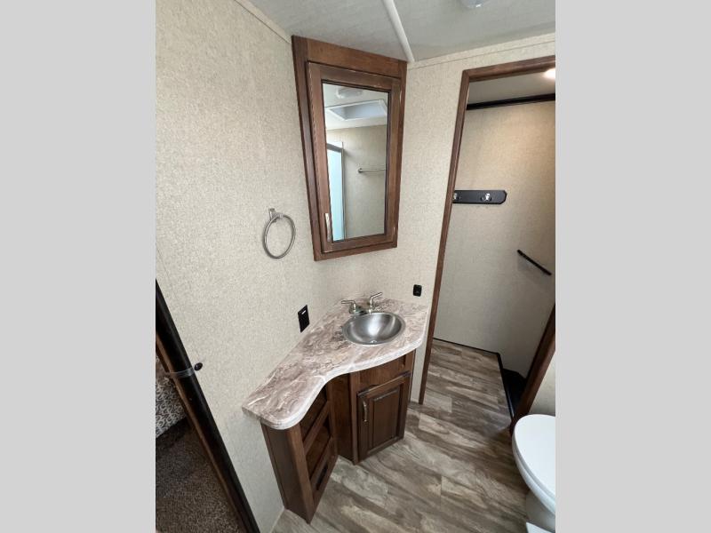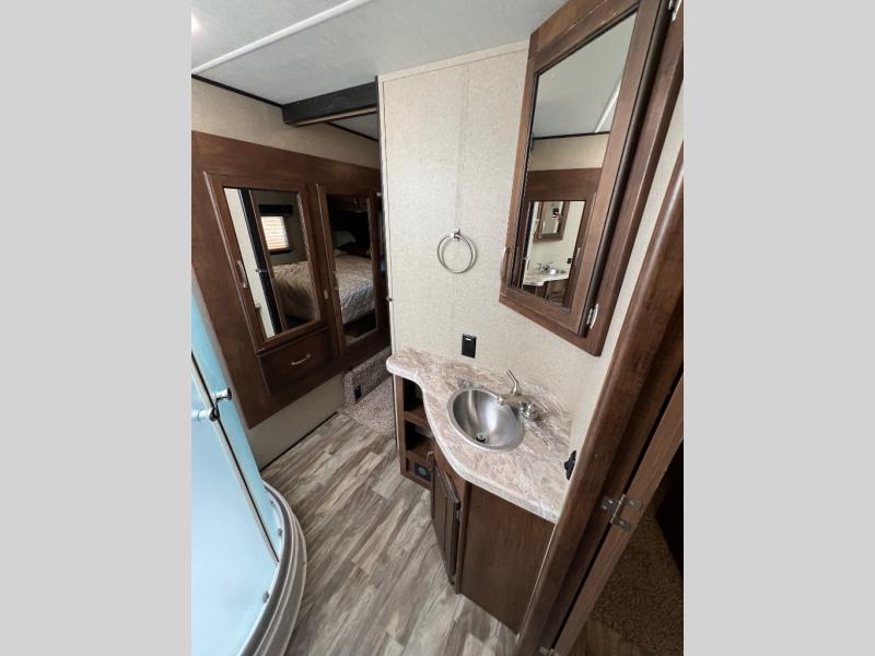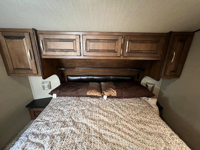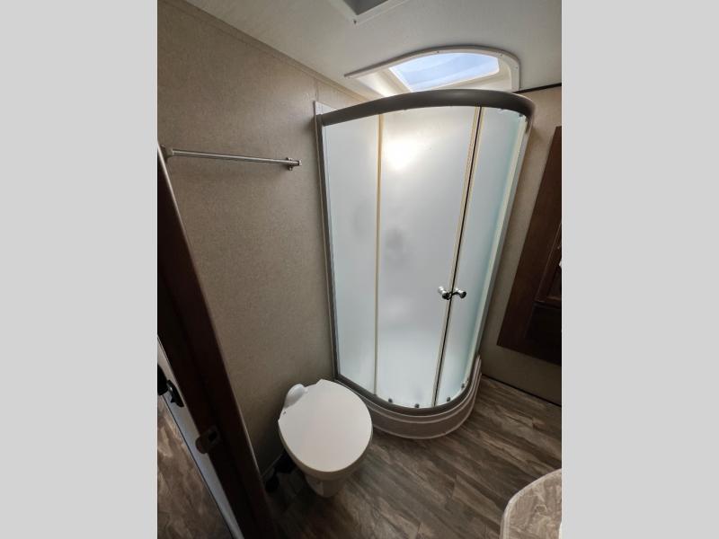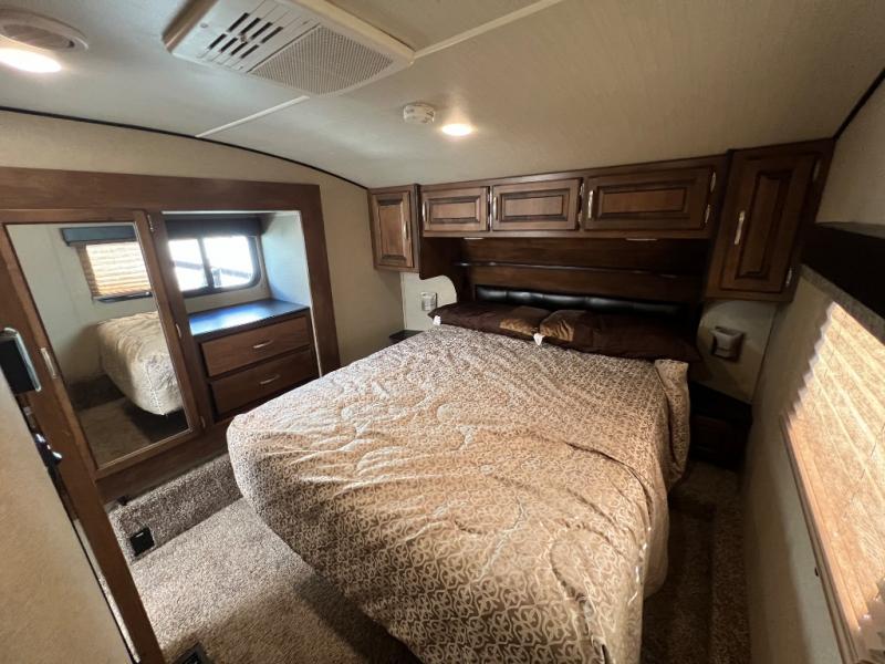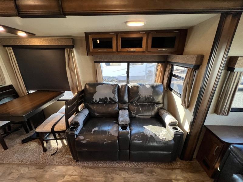 This Reflection 303RLS fifth wheel allows you to enjoy the comforts of home while moving from place to place with your spouse or smaller family. If you can imagine sitting in the rear living area on a tri-fold sofa bed after making dinner and serving the food from the kitchen island, this model is for you. You are sure to love the farm sink also. Even if you enjoy being outside most of the time, the weather might have you coming inside to watch the 40" TV or cozy up to the fireplace. Don't forget about storing your camp chairs and golf clubs in the unobstructed pass-through compartment if you need a dry place for those items. This model has many more standard features to enjoy and options to choose from, come see today!