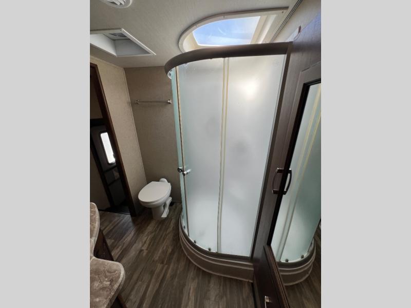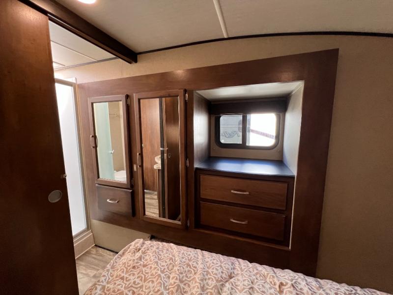 The Reflection by Grand Design offers luxury along with providing easy towing with the aerodynamic front cap with Max Turn radius to your favorite destinations. The Universal All-In-One docking station, LP Quick Connect, and One-Touch electric awning with LED light make setting up and packing up easy for those weekenders or full-timers that like to move around. Inside you will find the bedroom is complete with a pillowtop queen mattress, king size wardrobe, oversized underbed storage, and much more! The Arctic 4-Seasons Protection package allows you to camp anywhere and anytime of the year. Come choose your favorite model today!