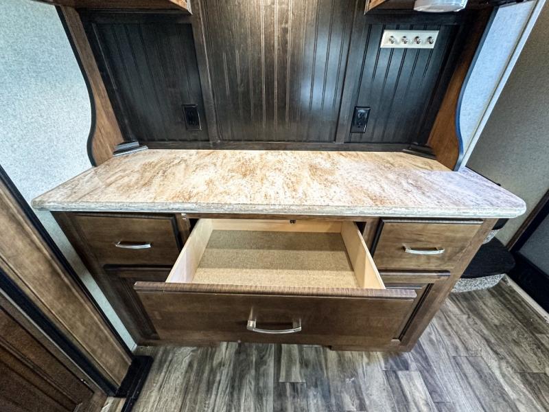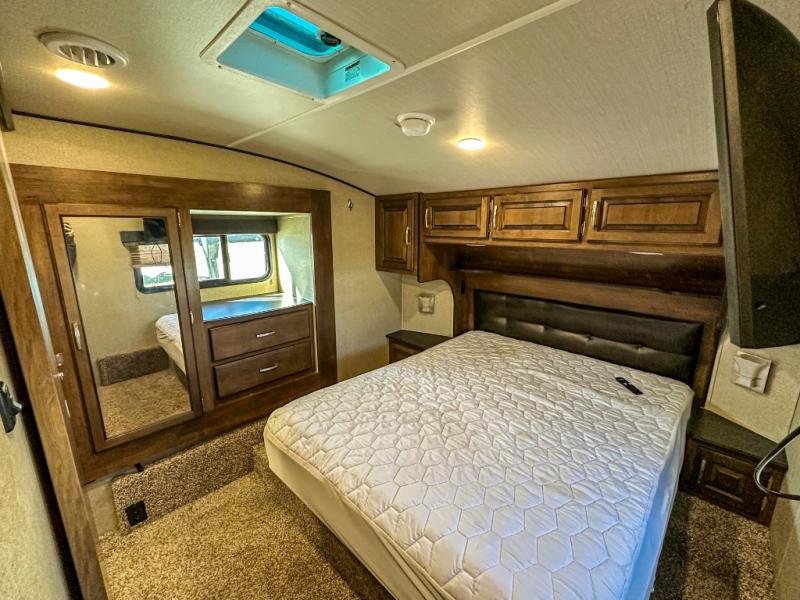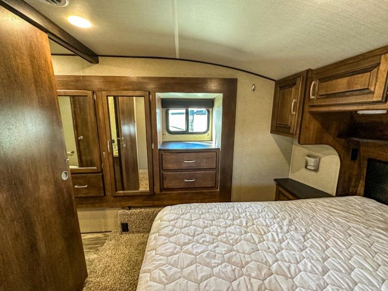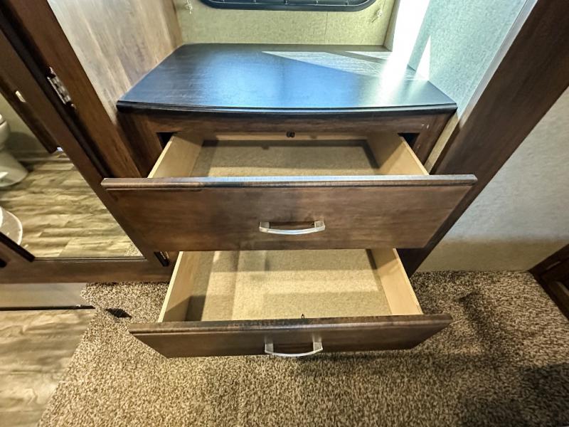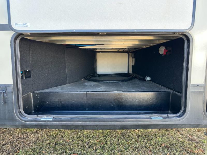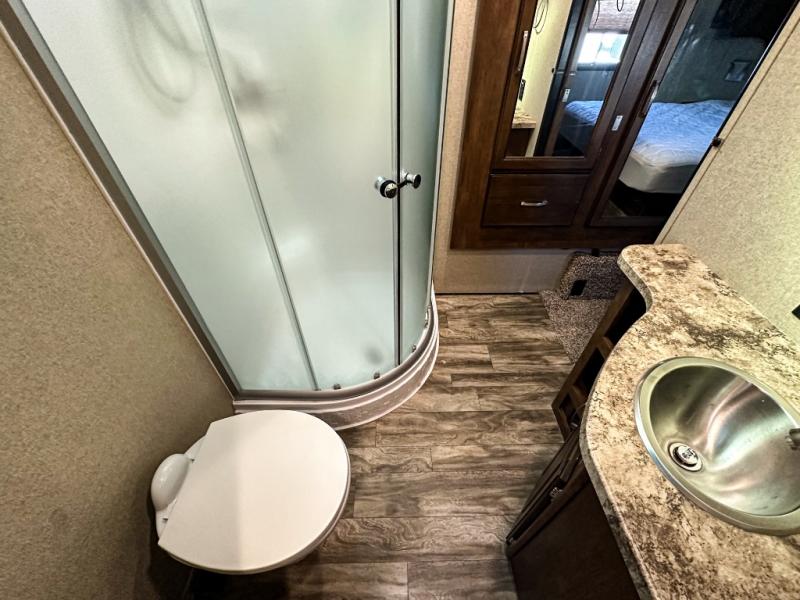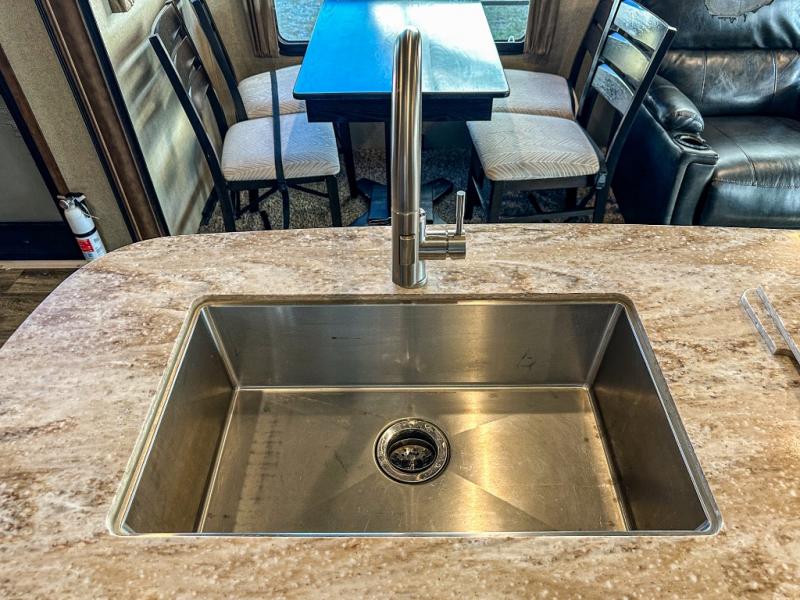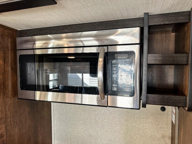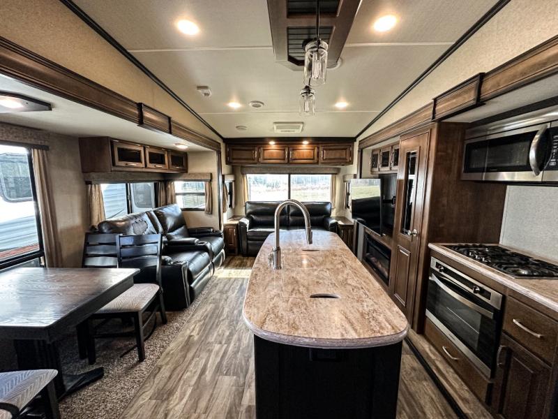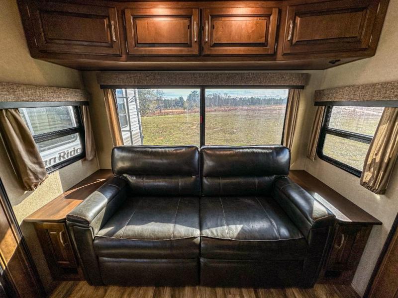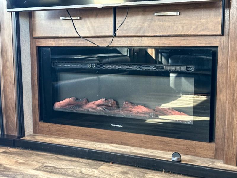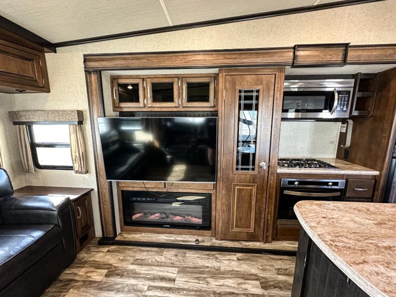 This Reflection 303RLS fifth wheel allows you to enjoy the comforts of home while moving from place to place with your spouse or smaller family. If you can imagine sitting in the rear living area on a tri-fold sofa bed after making dinner and serving the food from the kitchen island, this model is for you. You are sure to love the farm sink also. Even if you enjoy being outside most of the time, the weather might have you coming inside to watch the 40" TV or cozy up to the fireplace. Don't forget about storing your camp chairs and golf clubs in the unobstructed pass-through compartment if you need a dry place for those items. This model has many more standard features to enjoy and options to choose from, come see today!