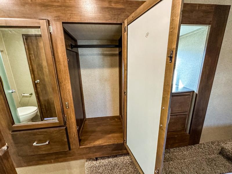 The Reflection by Grand Design offers luxury along with providing easy towing with the aerodynamic front cap with Max Turn radius to your favorite destinations. The Universal All-In-One docking station, LP Quick Connect, and One-Touch electric awning with LED light make setting up and packing up easy for those weekenders or full-timers that like to move around. Inside you will find the bedroom is complete with a pillowtop queen mattress, king size wardrobe, oversized underbed storage, and much more! The Arctic 4-Seasons Protection package allows you to camp anywhere and anytime of the year. Come choose your favorite model today!