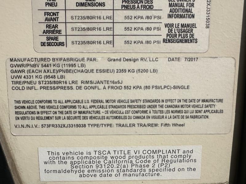 Used 2018 Grand Design Reflection 303RLS Fifth Wheel
