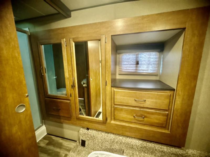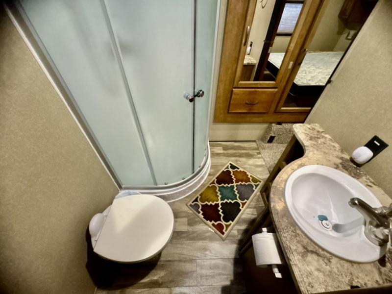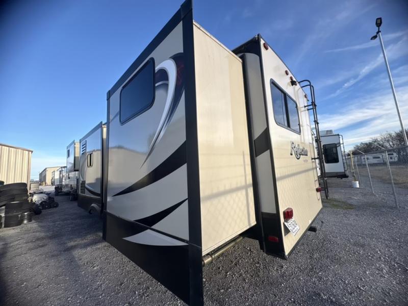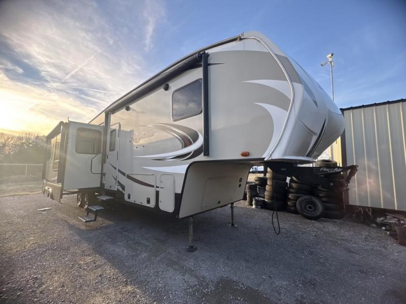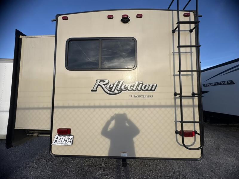 The Reflection by Grand Design offers luxury along with providing easy towing with the aerodynamic front cap with Max Turn radius to your favorite destinations. The Universal All-In-One docking station, LP Quick Connect, and One-Touch electric awning with LED light make setting up and packing up easy for those weekenders or full-timers that like to move around. Inside you will find the bedroom is complete with a pillowtop queen mattress, king size wardrobe, oversized underbed storage, and much more! The Arctic 4-Seasons Protection package allows you to camp anywhere and anytime of the year. Come choose your favorite model today!