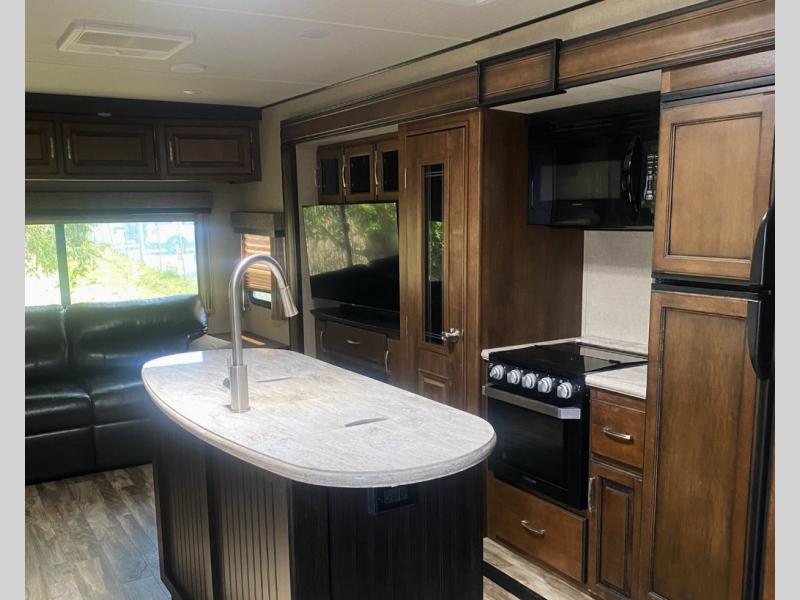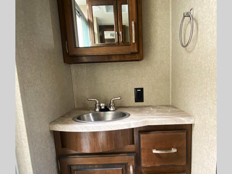 This Reflection 315RLTS travel trailer allows you to enjoy the comforts of home while away exploring the world with your favorite person. You can even invite over a few overnight guests. Just imagine sitting in the rear living area on the furniture provided while visiting with the cook preparing meals at the kitchen island or washing dishes in the farm sink. You might even glance over at the 40" TV and fireplace ever once in a while. You will find storage everywhere you look inside including outside in the unobstructed pass-through compartment. This model has many more standard features to enjoy and options to choose from to make this your perfect full-time or weekend retreat on wheels.