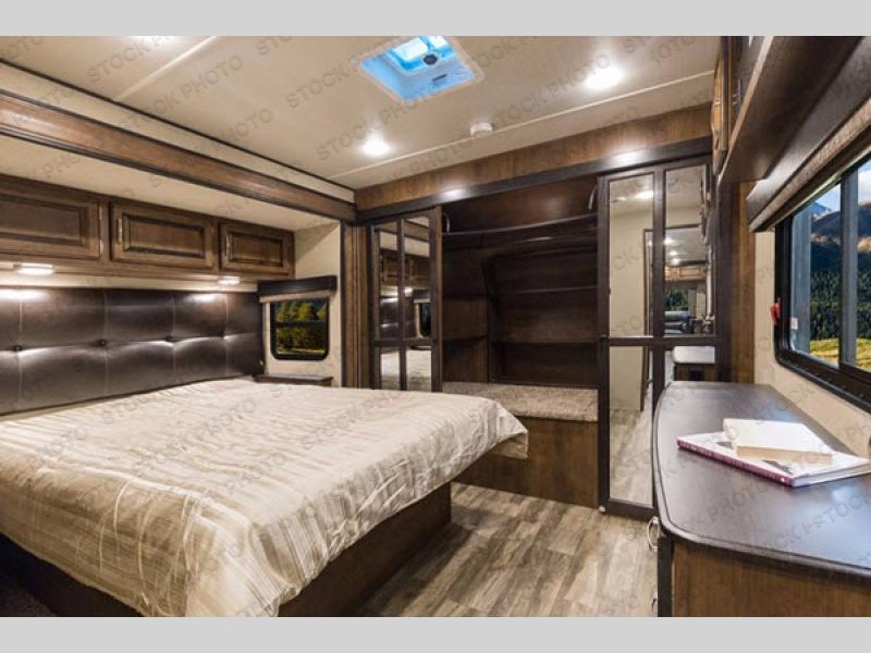 The Reflection by Grand Design offers luxury along with providing easy towing with the aerodynamic front cap with Max Turn radius to your favorite destinations. The Universal All-In-One docking station, LP Quick Connect, and One-Touch electric awning with LED light make setting up and packing up easy for those weekenders or full-timers that like to move around. Inside you will find the bedroom is complete with a pillowtop queen mattress, king size wardrobe, oversized underbed storage, and much more! The Arctic 4-Seasons Protection package allows you to camp anywhere and anytime of the year. Come choose your favorite model today!