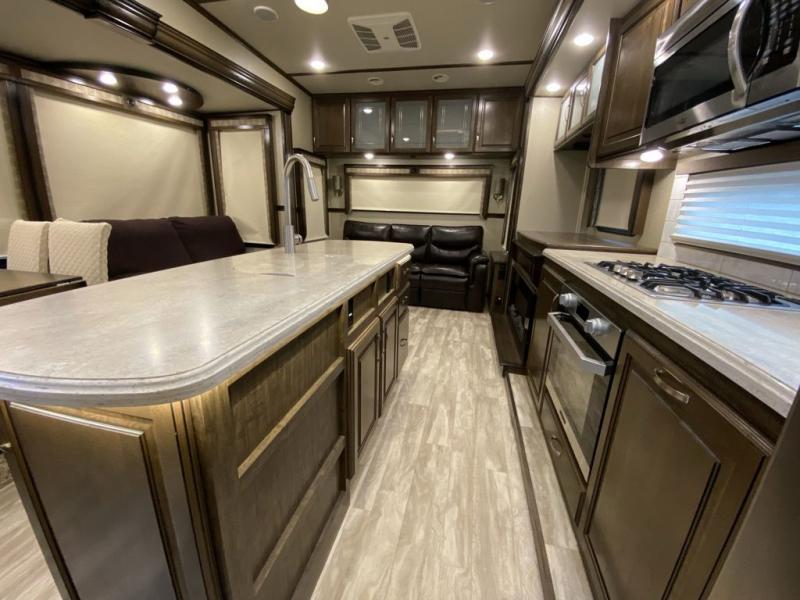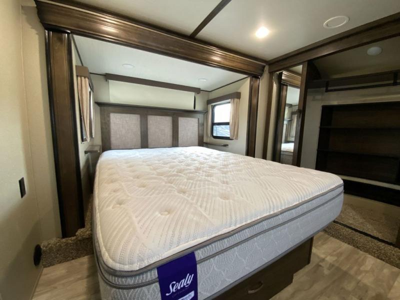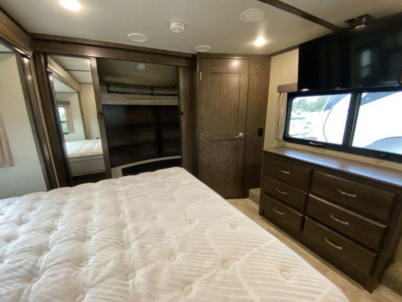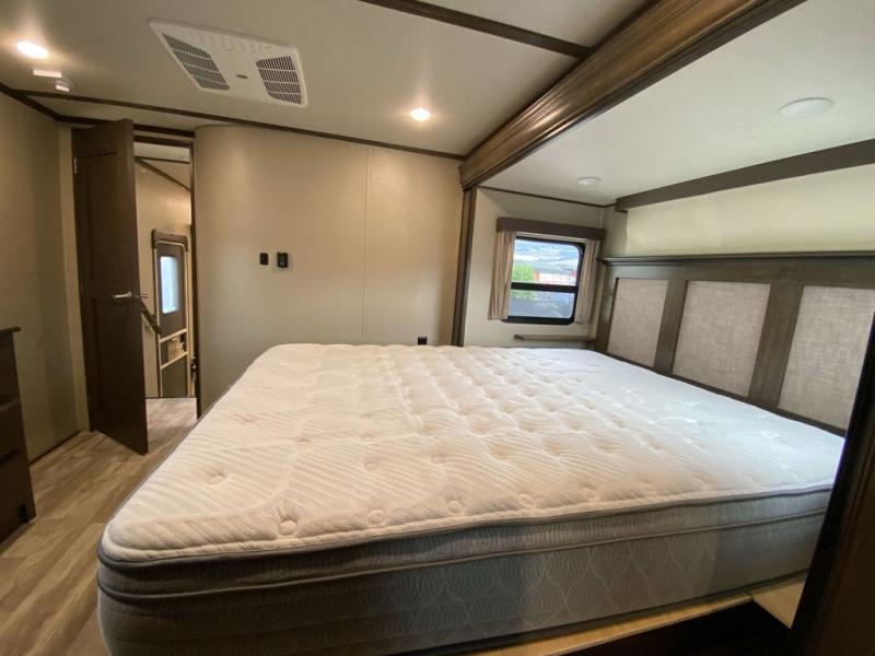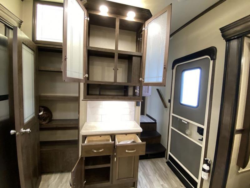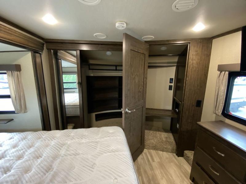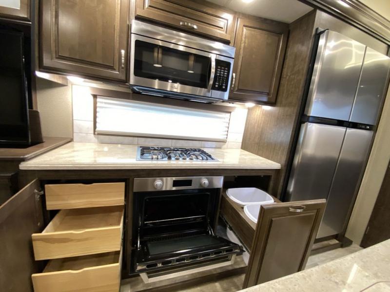 If you are on the search for a livable fifth wheel for those month long trips this Solitude 310GK might be the one! Just imagine cooking on a professional grade stainless steel cooktop and inside a built-in oven or convection microwave. You can prepare the meals on the kitchen island, and store leftovers in the stainless steel 18 cu. ft. four door refrigerator. When you and your spouse aren't outside, you can watch your favorite show on the big screen LED TV in the living area while staying warm by the fireplace. You will find plenty of storage throughout including for your shoes, dry goods, linens, and your wardrobe. You might even like to choose a few options such as adding a washer and dryer, a dishwasher, a king size bed, or even a pull-out kitchen outside. Come see how this Solitude will make life comfortable for years to come!