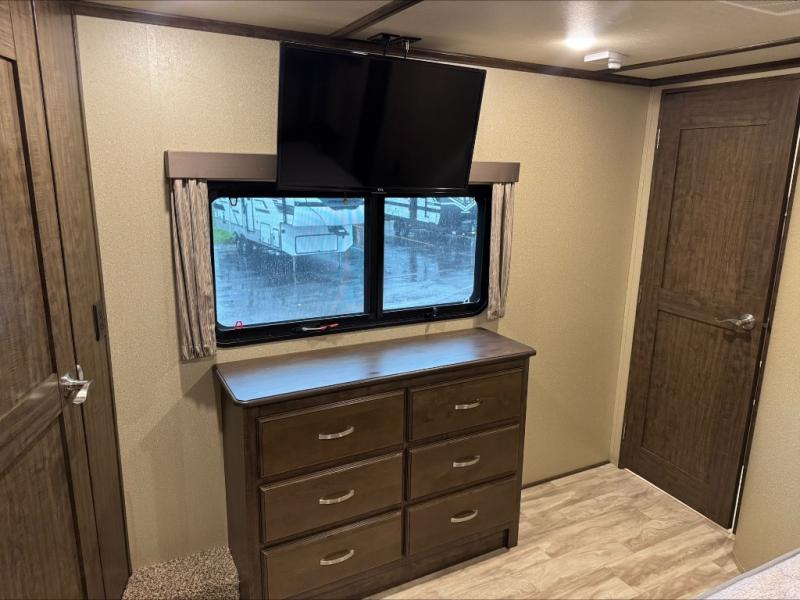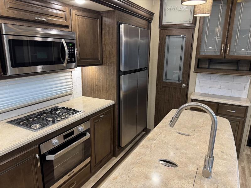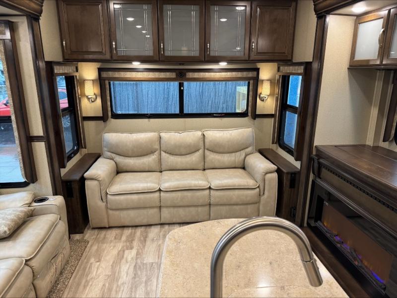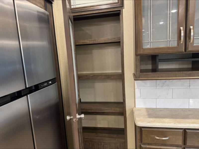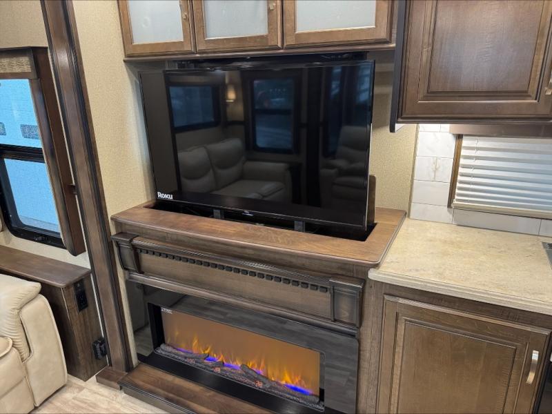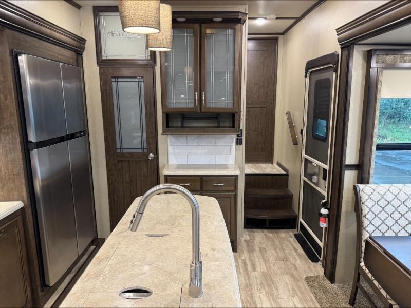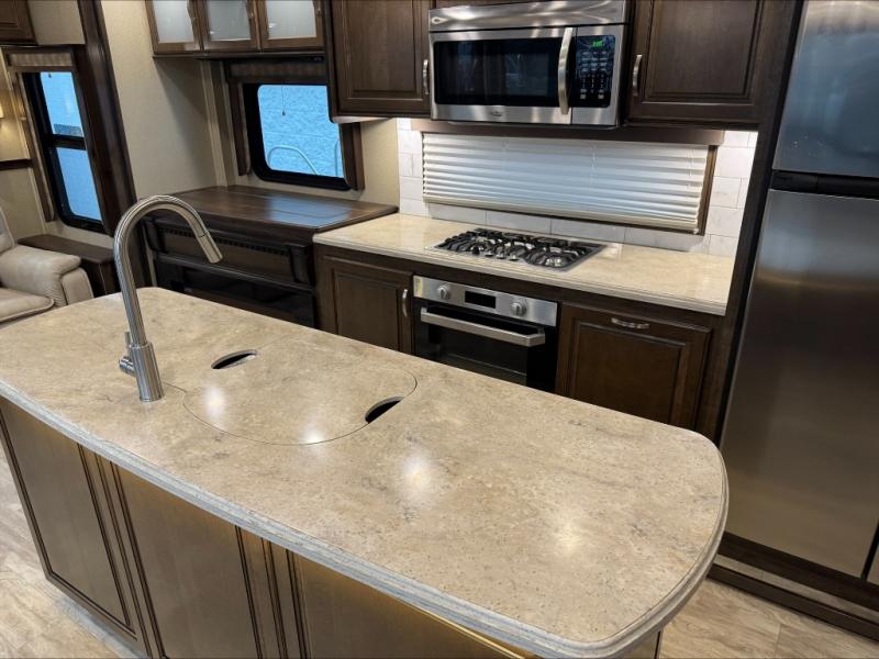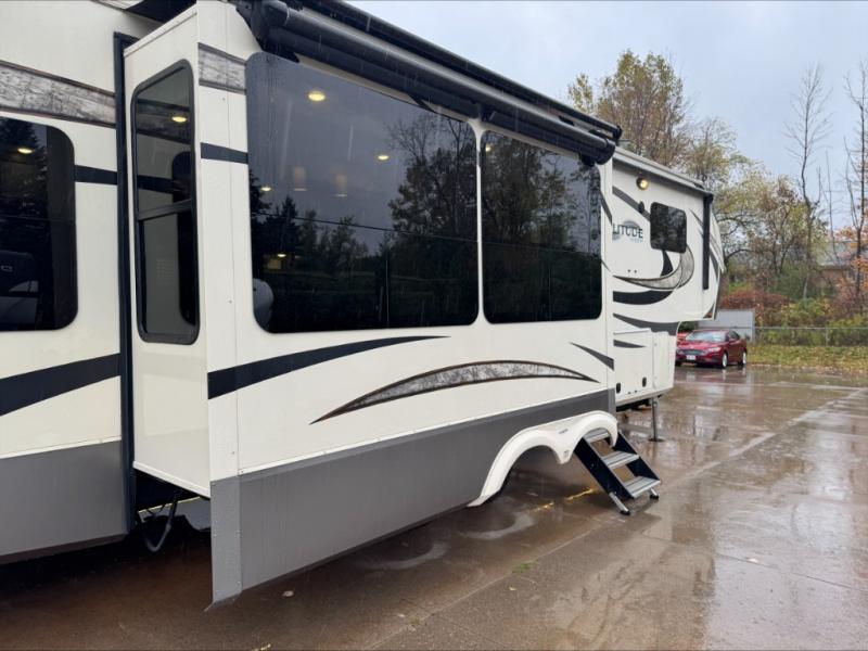 If you are on the search for a livable fifth wheel for those month long trips this Solitude 310GK might be the one! Just imagine cooking on a professional grade stainless steel cooktop and inside a built-in oven or convection microwave. You can prepare the meals on the kitchen island, and store leftovers in the stainless steel 18 cu. ft. four door refrigerator. When you and your spouse aren't outside, you can watch your favorite show on the big screen LED TV in the living area while staying warm by the fireplace. You will find plenty of storage throughout including for your shoes, dry goods, linens, and your wardrobe. You might even like to choose a few options such as adding a washer and dryer, a dishwasher, a king size bed, or even a pull-out kitchen outside. Come see how this Solitude will make life comfortable for years to come!