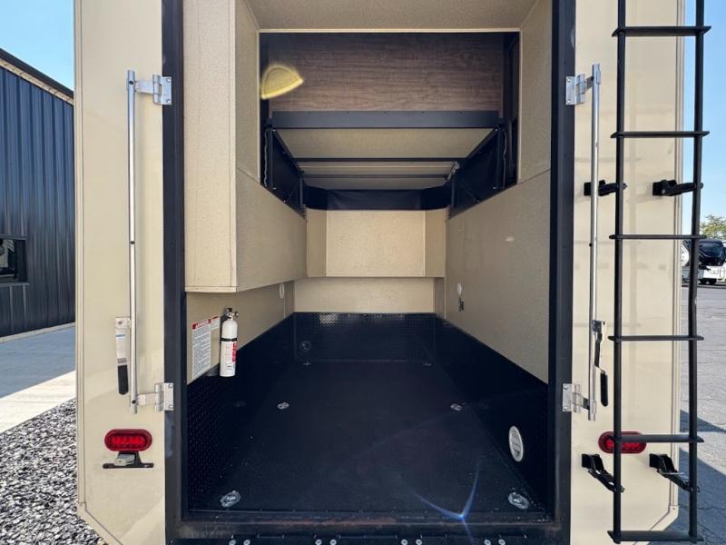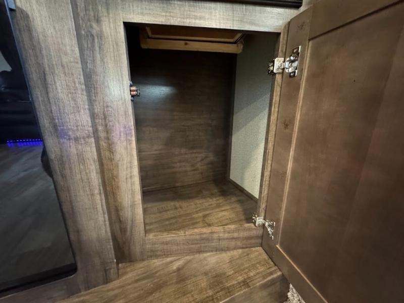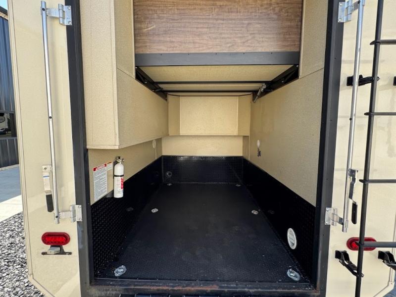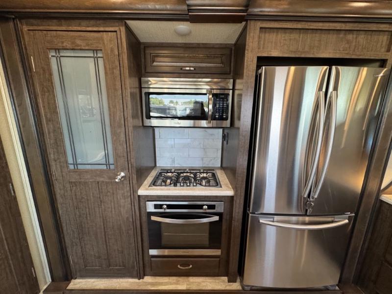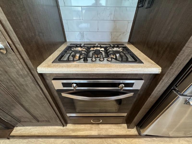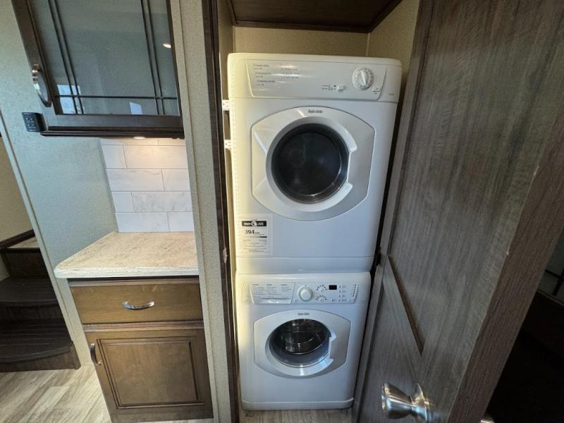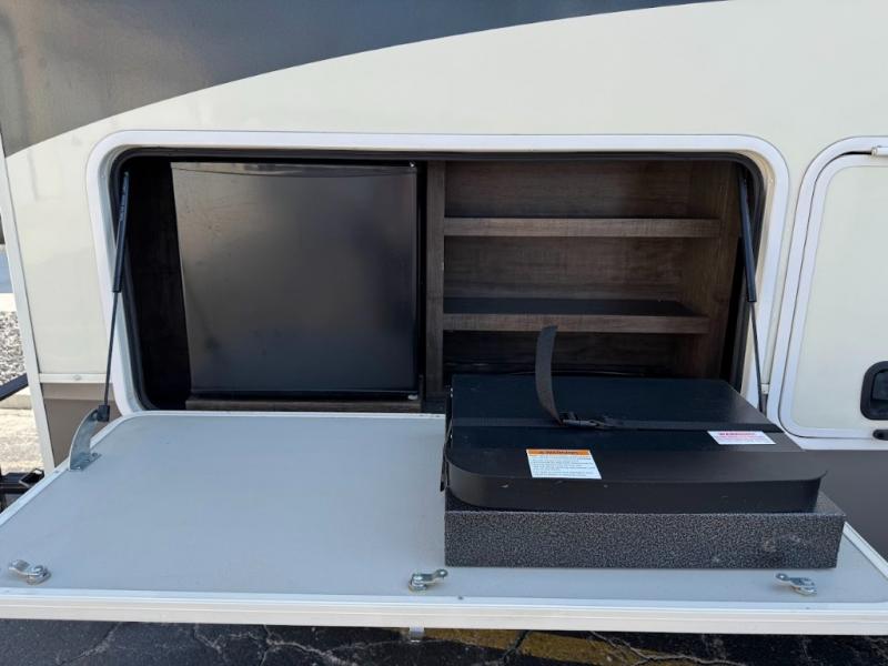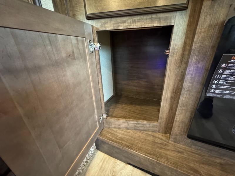 Dreaming about all the places you can take your off-road toy with you as well as your own bedding, living and kitchen area? This Solitude 374TH R toy hauler fifth wheel includes a unique below floor garage underneath the rear bedroom. Once the bed is lifted the garage's height extends to 77" from 65" tall. While your toy is securely stored, you can sleep in comfort and watch TV just before bedtime. You can choose to cook inside on the professional grade stainless steel cooktop after grabbing the ingredients from the stainless steel 18 cu. ft. residential refrigerator, or outdoors on the outside kitchen while watching TV. The front living area offers plenty of seating, a fireplace, and a TV for those inside camping days. So load up your toy and all your gear to hit the dunes, mountains, or countryside.