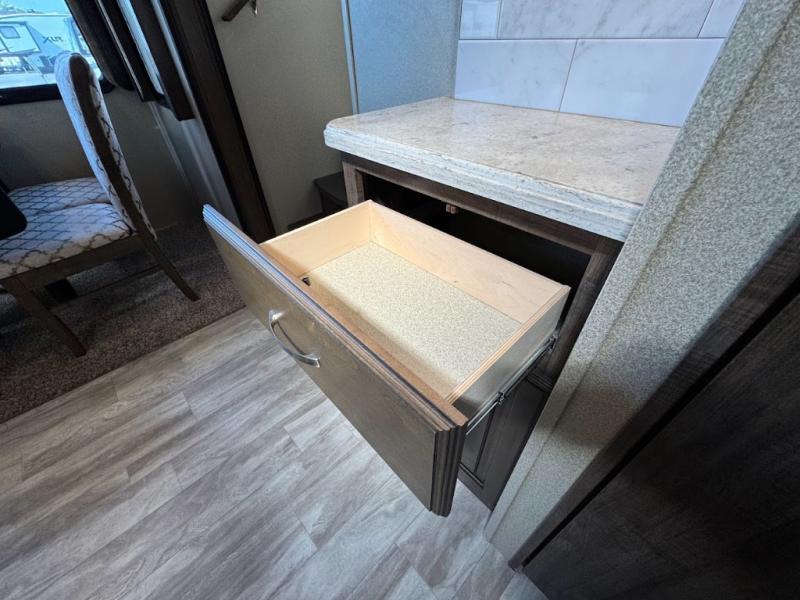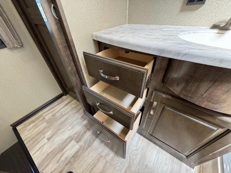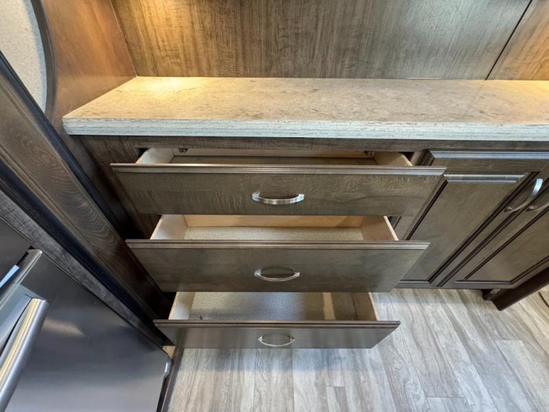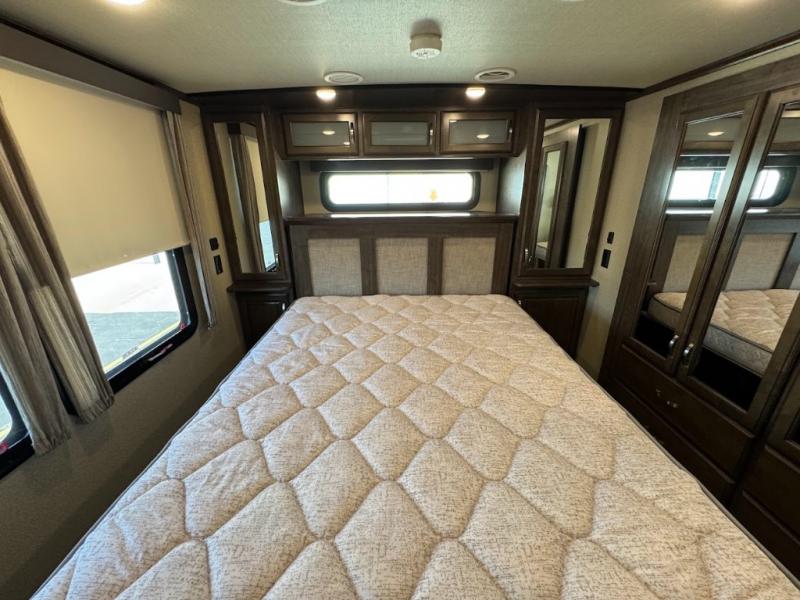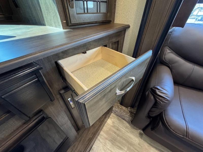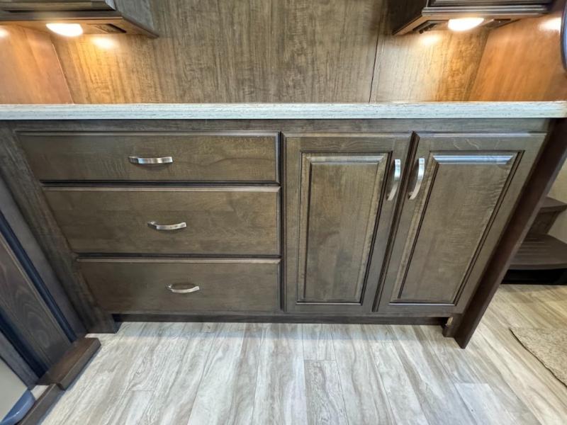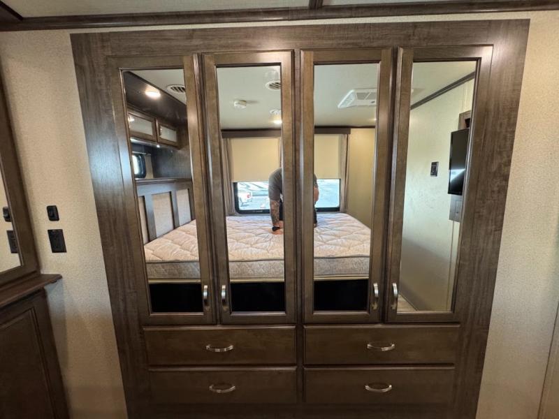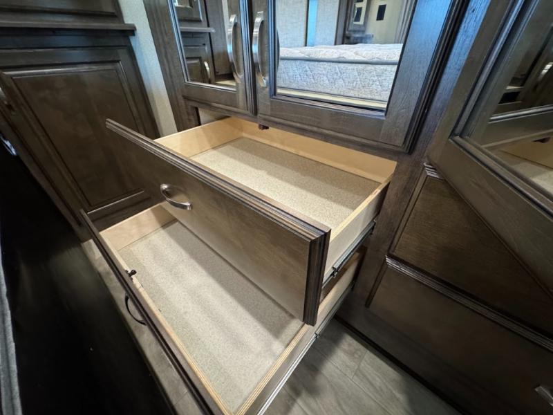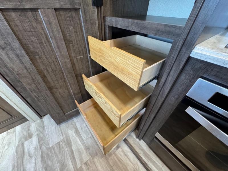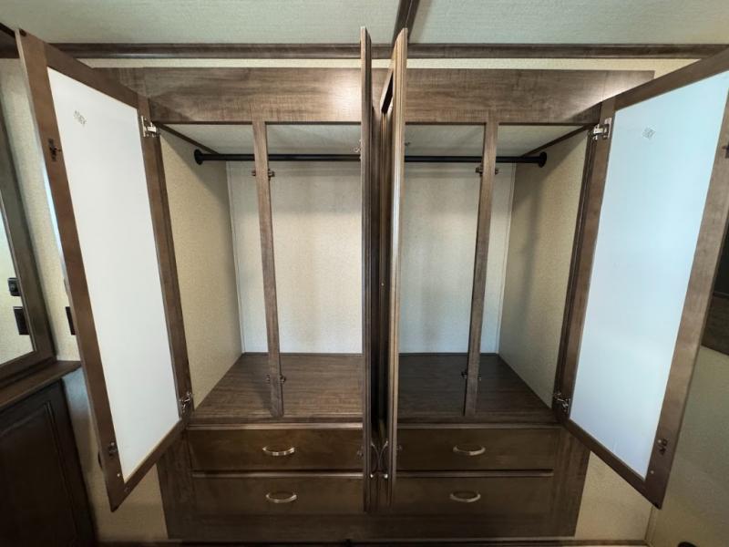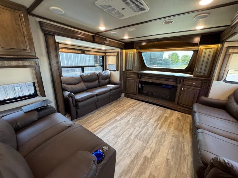 With each Solitude toy hauler fifth wheel by Grand Design you will receive affordable luxury for your extended stays or weekend get-a-ways. From the solid foundation including a Equa-Flex suspension to the taller ceilings, taller and deeper cabinets, the power reclining theatre seating with swivel table including a heat and massage function, a pet dish drawer, a Stealth AC system, and the Weather-Tek package which allows you to travel any season you choose. It's time to enjoy luxury living where ever you decide to land.