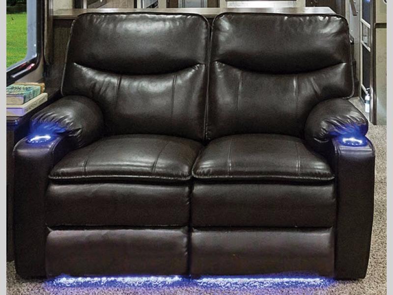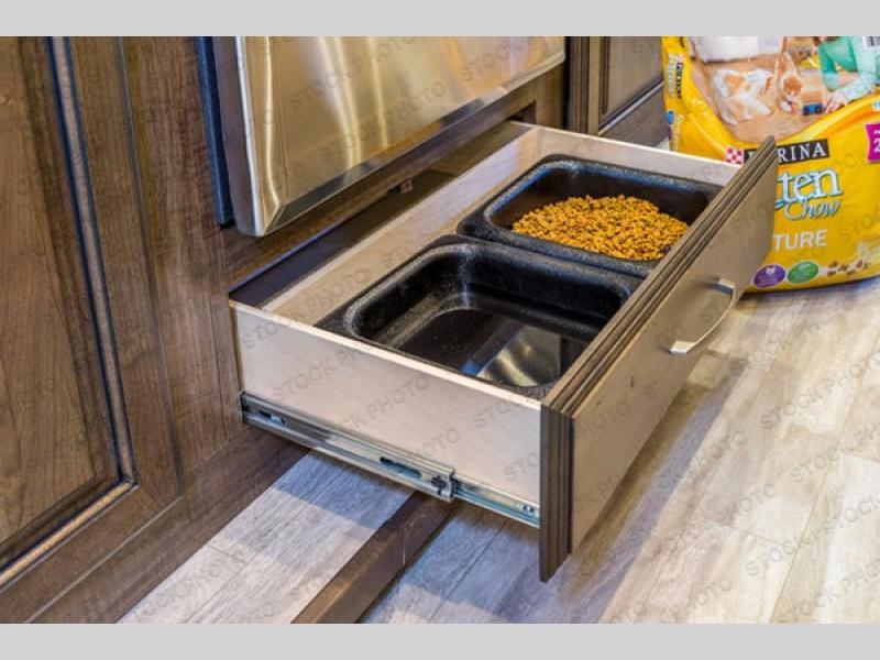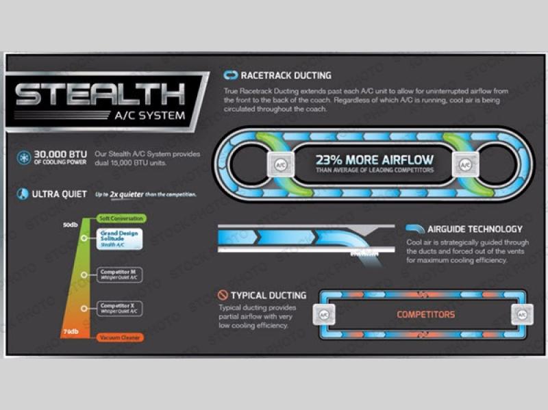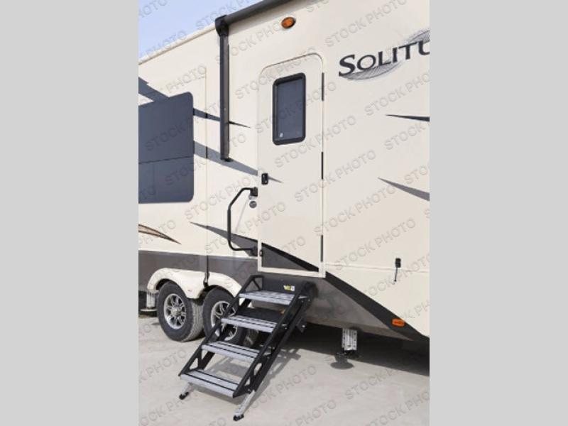 With each Solitude fifth wheel by Grand Design you will receive affordable luxury for your extended stays or weekend get-a-ways. From the solid foundation including a Equa-Flex suspension to the taller ceilings, taller and deeper cabinets, the power reclining theatre seating with swivel table including a heat and massage function, a pet dish drawer, a Stealth AC system, and the Weather-Tek package which allows you to travel any season you choose. It's time to enjoy luxury living where ever you decide to land.