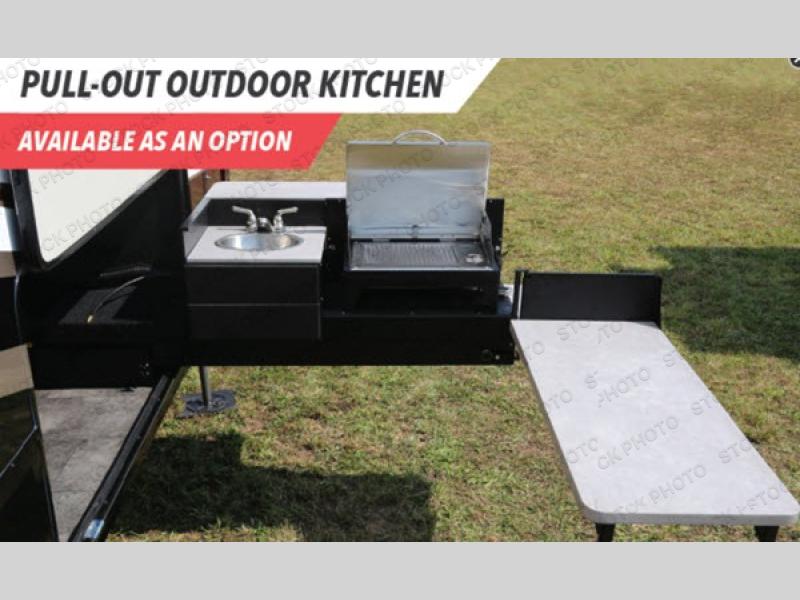 If you have been searching for a fifth wheel with an extra living room that can be utilized as an office or even a bedroom then look no further, this Solitude 377MBS R fifth wheel may complete your checklist. The extra living room provides a desk, storage, and a seating area, plus a loft above for even more sleeping space. The front master bedroom provides the perfect bedding, storage for all your clothing, and a TV, plus more! The cook will surely love making meals with the professional grade stainless steel cooktop, built-in oven and convection microwave. The popular kitchen island, stainless steel 18 cu. ft. residential refrigerator, and large pantry allow you to stock up on food and wash dishes while visiting with your guests. The buffet adds additional counter space to serve food or place your keys and things. You might even decide to add a few options such as a washer and dryer to keep your clothes clean the whole time, a king size bed for more sleeping surface, or even a pull-out kitchen to make meals outdoors. There are many features and plenty of space for everyone!