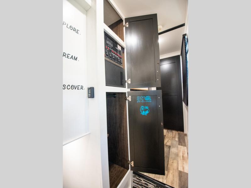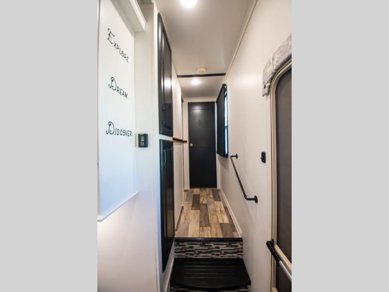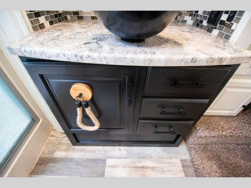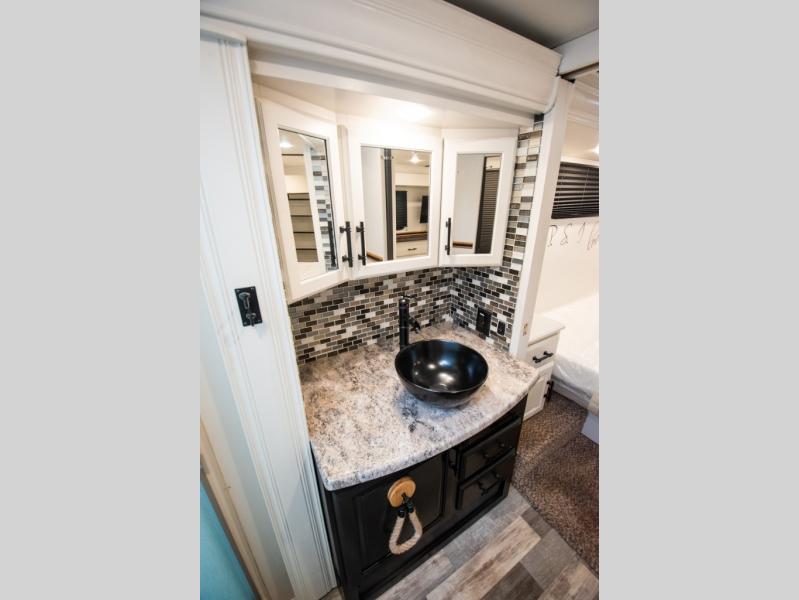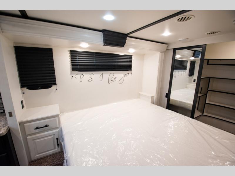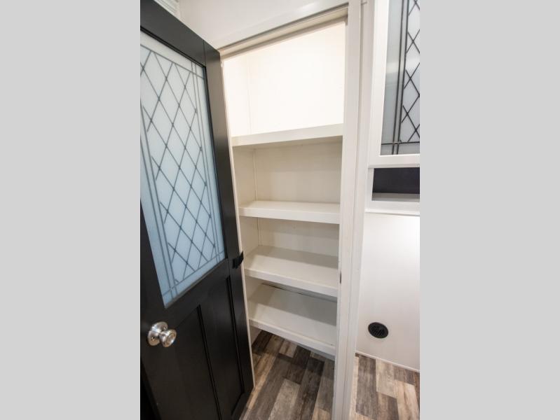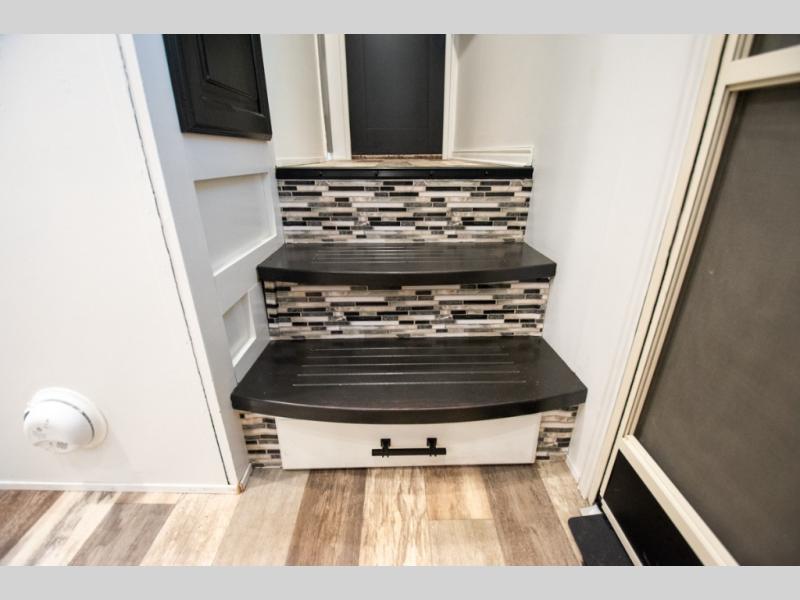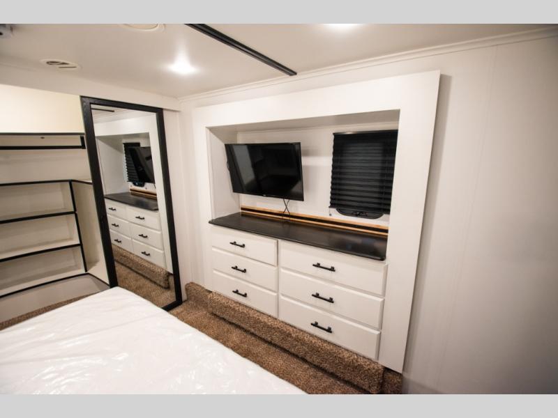 If you have been searching for a livable fifth wheel, this Solitude 384GK might be the one! Just imagine making breakfast with the professional grade stainless steel cooktop and convection microwave. You might even prepare and serve the food on the kitchen island, and store leftovers in the stainless steel 18 cu. ft. four door refrigerator. When you and your spouse aren't exploring outside, you can work at the desk, or watch your favorite show on the big screen LED TV in the living area while staying warm by the fireplace. You will find plenty of storage throughout including for your shoes, dry goods, linens, and your wardrobe. You might even decide to add a washer and dryer, a dishwasher, and a pull-out kitchen outside. Come sit in this Solitude to see how comfortable you will be!