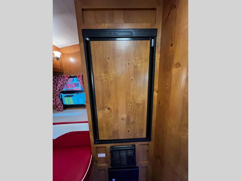 Any Vintage Cruiser model will bring you a lightweight, fun vintage vibe from the 50's when life was simpler and the pace was slower and more relaxed. These 20-26-foot models put state-of-the-art conveniences into the look of yesteryear to bring you a camping experience like no other. The Vintage Cruiser can easily be towed by your family SUV or Mini-van, and each unit features Congoleum non-stick flooring, Roanoke light Cherry cabinetry with flat panel vintage cabinet doors and drawers, LED lighting both inside and out, and a full dry bath all nestled within a welded tubular aluminum frame enclosed with a vacuum-bonded laminated fiberglass exterior including a one piece fiberglass roof.