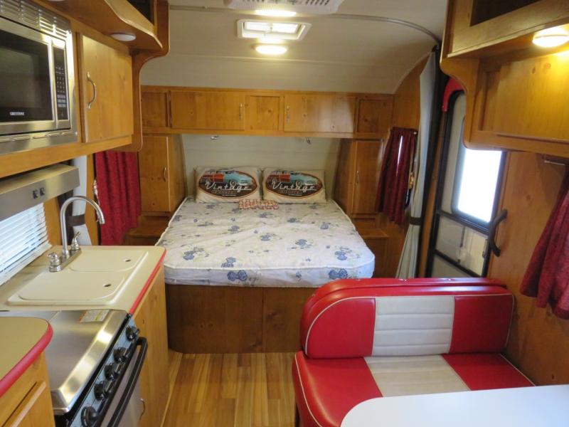 Any Vintage Cruiser model will bring you a lightweight, fun vintage vibe from the 50's when life was simpler and the pace was slower and more relaxed. These 20-26-foot models put state-of-the-art conveniences into the look of yesteryear to bring you a camping experience like no other. The Vintage Cruiser can easily be towed by your family SUV or Mini-van, and each unit features Congoleum non-stick flooring, Roanoke light Cherry cabinetry with flat panel vintage cabinet doors and drawers, LED lighting both inside and out, and a full dry bath all nestled within a welded tubular aluminum frame enclosed with a vacuum-bonded laminated fiberglass exterior including a one piece fiberglass roof.