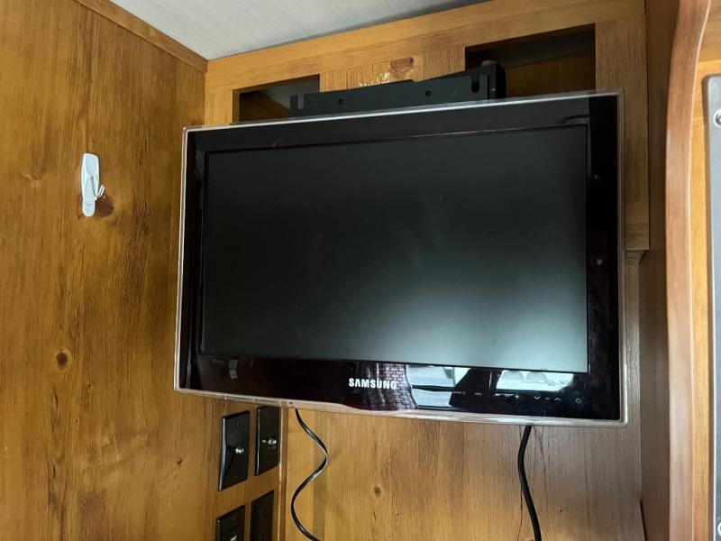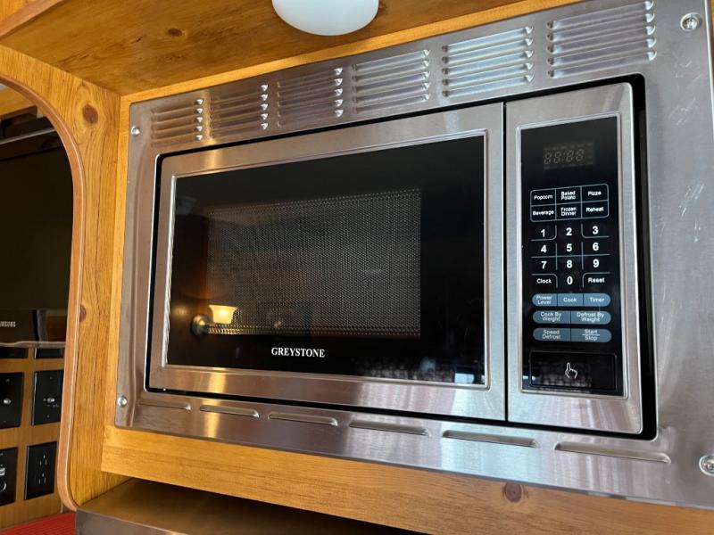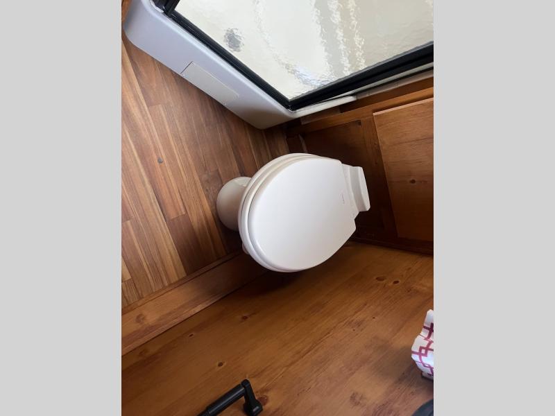 Everywhere you look in this Vintage Cruiser you will see the view you chose for your camp outing as there are windows in every space, even the bathroom. Between tons of natural lighting, and the LED lighting throughout, you will find the inside fresh and bright even on a cloudy day. Every morning you can wake to the sights and sounds of nature after a great night's sleep on the queen bed provided, then head to a spacious rear bath and get ready for your new day. The skylight above the shower will bring in more light to wake you along with the smells of breakfast being made just outside the door. There is a TV mount opposite the dinette if you choose to add an HDTV for enjoyment, plus you will also find multiple USB locations both inside and out handy for keeping all of your electronics charged as well.