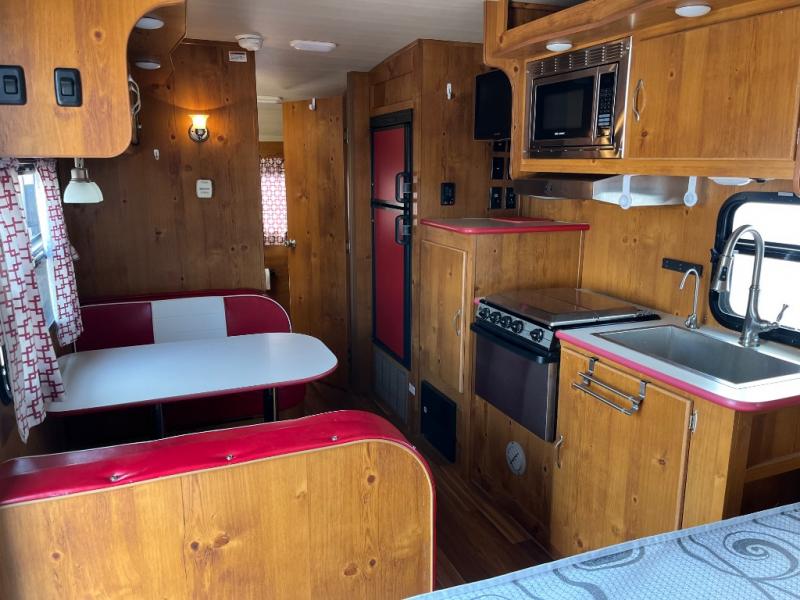 Any Vintage Cruiser model will bring you a lightweight, fun vintage vibe from the 50's when life was simpler and the pace was slower and more relaxed. These 20-26-foot models put state-of-the-art conveniences into the look of yesteryear to bring you a camping experience like no other. The Vintage Cruiser can easily be towed by your family SUV or Mini-van, and each unit features Congoleum non-stick flooring, Roanoke light Cherry cabinetry with flat panel vintage cabinet doors and drawers, LED lighting both inside and out, and a full dry bath all nestled within a welded tubular aluminum frame enclosed with a vacuum-bonded laminated fiberglass exterior including a one piece fiberglass roof.