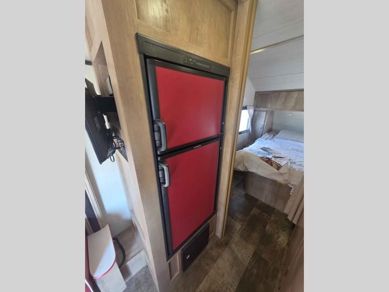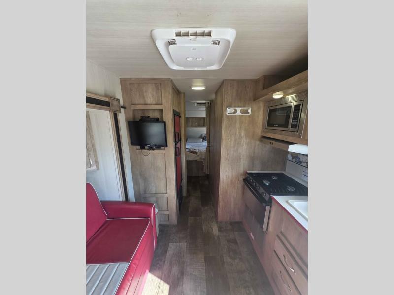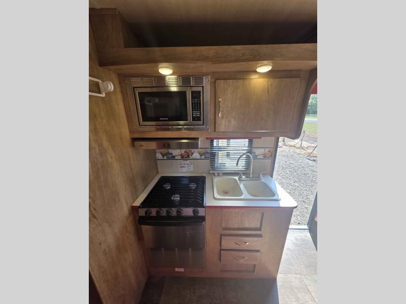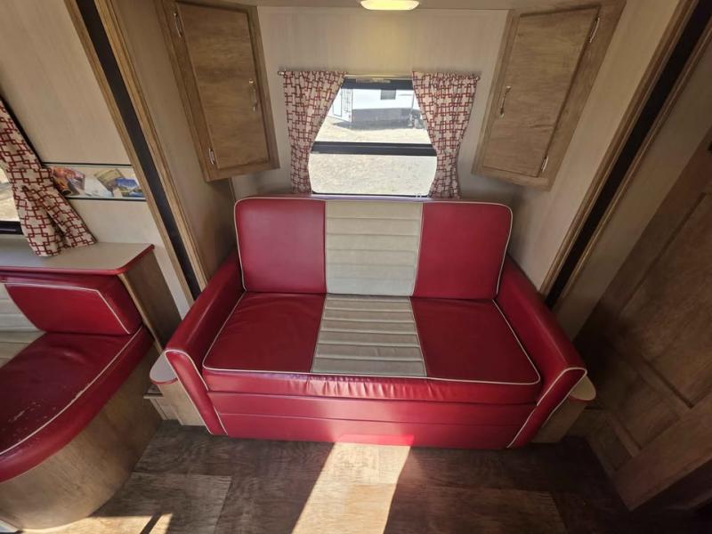 You are going to love the nostalgic feel of this Vintage Cruiser when you step inside and see the retro-style upholstery on the dinette and sofa slide out, as well as accent pieces throughout . But, don't let the feel of yesteryear throw you as this unit is filled with plenty of modern conveniences like an overhead microwave oven in the kitchen, multiple USB charging ports both inside and out, plus energy efficient LED lighting to help keep the interior bright and cheerful, and the exterior lit well at night. With a slide out sofa, this Vintage Cruiser provides a spacious interior. It is also the largest in the line-up as well. Outside, you will find abundant storage with a front pass-through compartment and rear storage on either side for all of your outdoor camping gear.