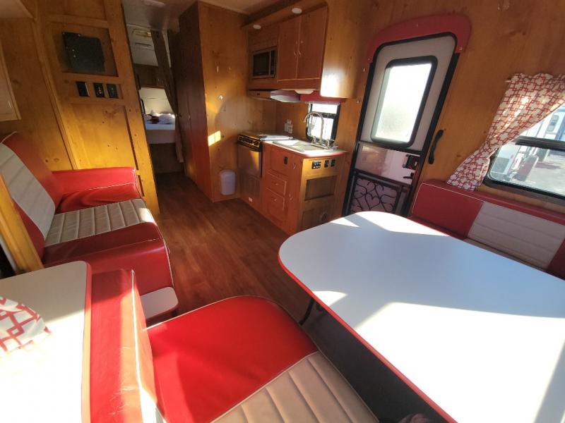 You are going to love the nostalgic feel of this Vintage Cruiser when you step inside and see the retro-style upholstery on the dinette and sofa slide out, as well as accent pieces throughout . But, don't let the feel of yesteryear throw you as this unit is filled with plenty of modern conveniences like an overhead microwave oven in the kitchen, multiple USB charging ports both inside and out, plus energy efficient LED lighting to help keep the interior bright and cheerful, and the exterior lit well at night. With a slide out sofa, this Vintage Cruiser provides a spacious interior. It is also the largest in the line-up as well. Outside, you will find abundant storage with a front pass-through compartment and rear storage on either side for all of your outdoor camping gear.