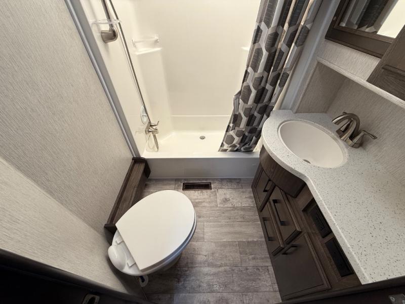 The Cyclone toy hauler fifth wheels by Heartland RV are not your ordinary toy hauler. These models have beautiful cabinets and plenty of comforts throughout such as high quality residential furniture, a 55” LCD HDTV flat screen TV, cable TV and satellite hook-ups, plus a separate DVD/CD/MP3 Bluetooth stereo for the garage and exterior. Along the exterior there are stunning graphics and you will enjoy the view out of the large bedroom picture windows. The two side awnings with LED lights provide plenty of shade during the day, and at night you can grab a snack, your camp chair, and enjoy visiting outdoors just a bit longer. The ultra-light ramp door allows you to easily load your off road toys. In the garage you will also find an electric rear screen, decorative chair rail, plus built-in overhead cabinets with an entertainment center and more! You may even want to add the S5 Package which includes a 2nd fuel cell, 40" garage TV, solid surface counter top in the bedroom, central vacuum, 32" bedroom TV, and upgraded furniture with USB ports and built-in tables.