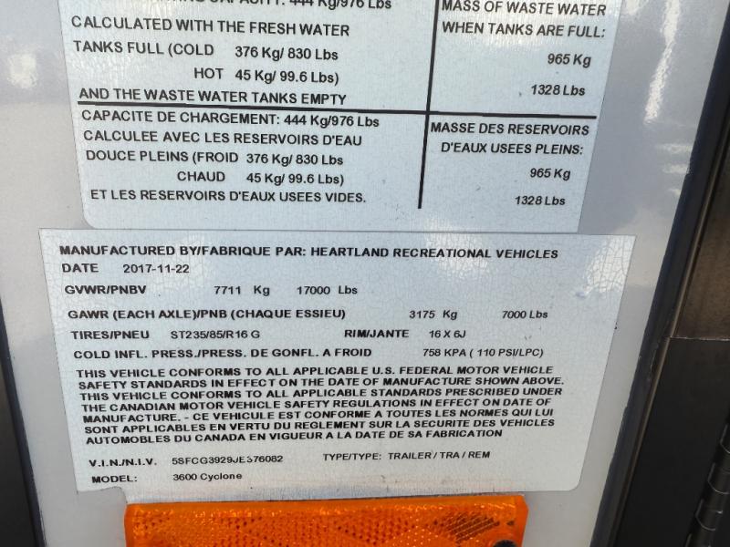 Used 2018 Heartland Cyclone 3600 Toy Hauler Fifth Wheel