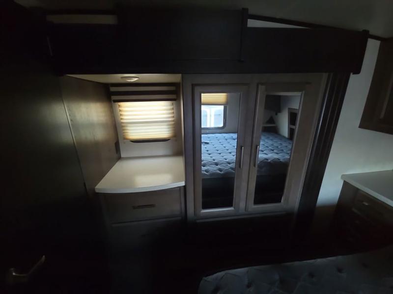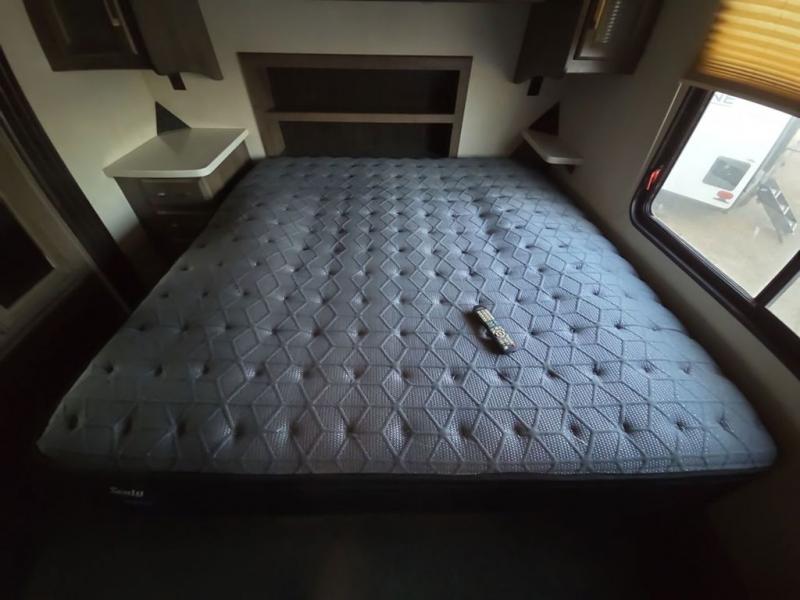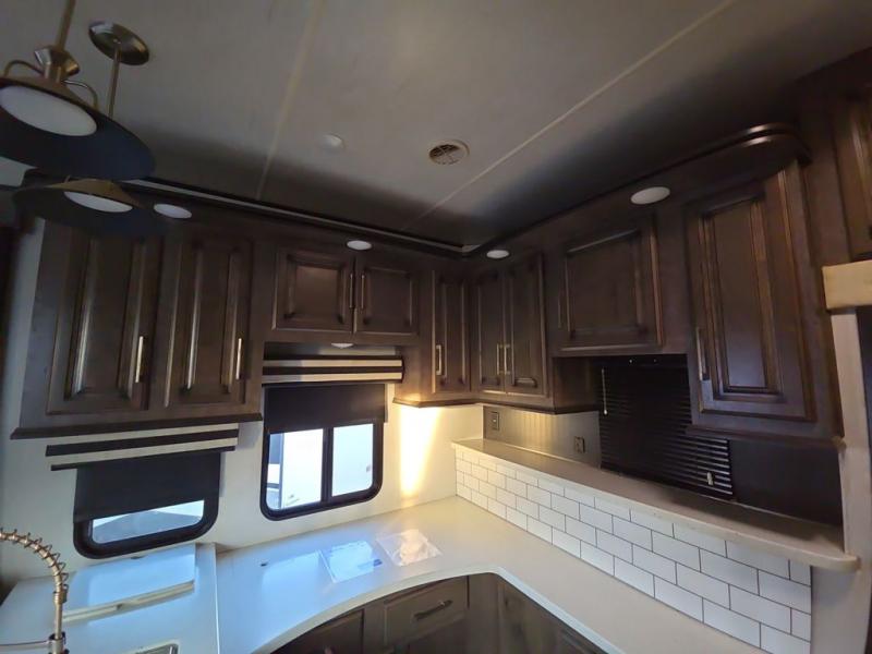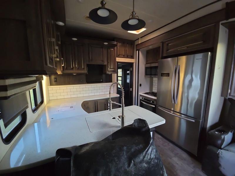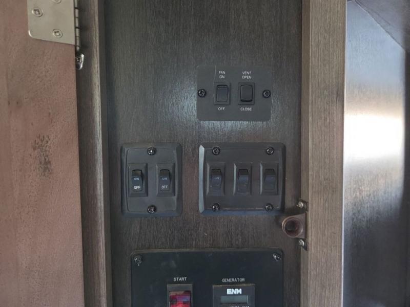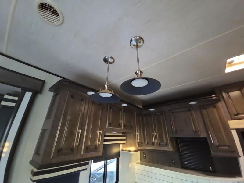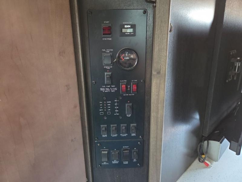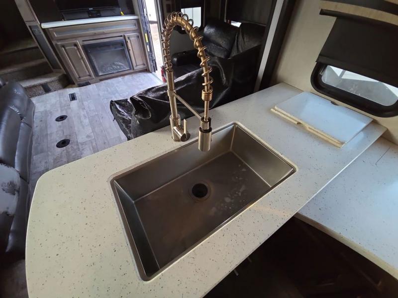 The Cyclone toy hauler fifth wheels by Heartland RV are not your ordinary toy hauler. These models have beautiful cabinets and plenty of comforts throughout such as high quality residential furniture, a 55” LCD HDTV flat screen TV, cable TV and satellite hook-ups, plus a separate DVD/CD/MP3 Bluetooth stereo for the garage and exterior. Along the exterior there are stunning graphics and you will enjoy the view out of the large bedroom picture windows. The two side awnings with LED lights provide plenty of shade during the day, and at night you can grab a snack, your camp chair, and enjoy visiting outdoors just a bit longer. The ultra-light ramp door allows you to easily load your off road toys. In the garage you will also find an electric rear screen, decorative chair rail, plus built-in overhead cabinets with an entertainment center and more! You may even want to add the S5 Package which includes a 2nd fuel cell, 40" garage TV, solid surface counter top in the bedroom, central vacuum, 32" bedroom TV, and upgraded furniture with USB ports and built-in tables.