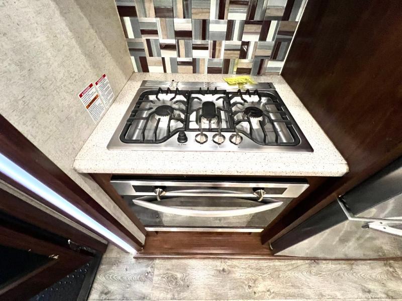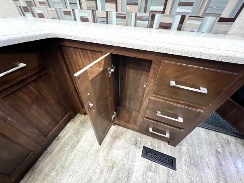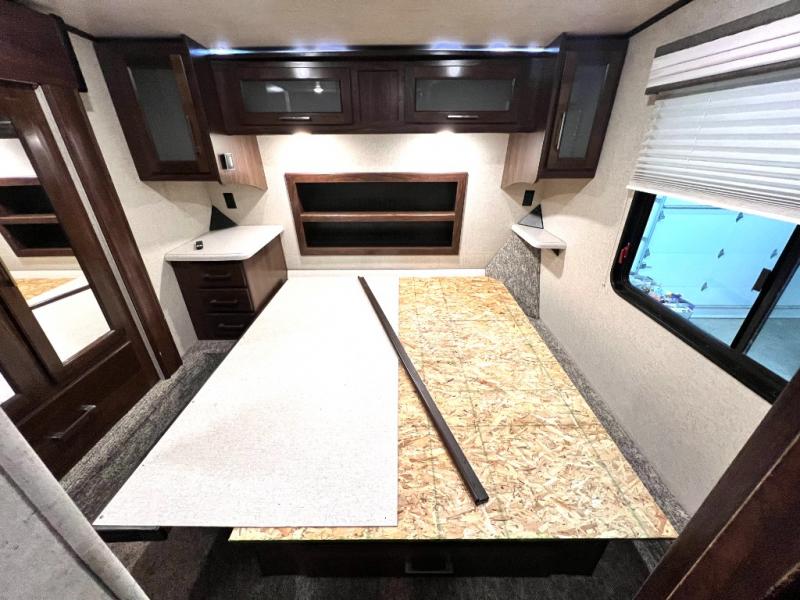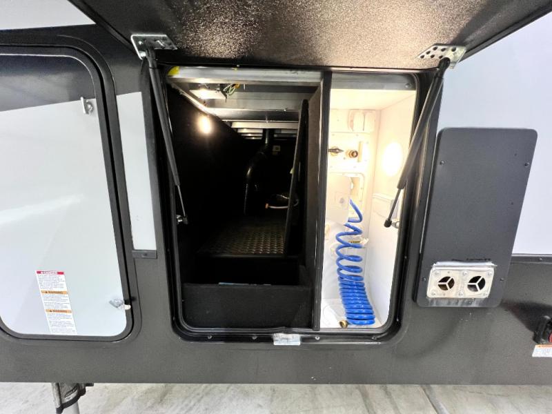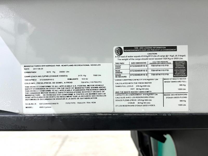 The Cyclone toy hauler fifth wheels by Heartland RV are not your ordinary toy hauler. These models have beautiful cabinets and plenty of comforts throughout such as high quality residential furniture, a 55” LCD HDTV flat screen TV, cable TV and satellite hook-ups, plus a separate DVD/CD/MP3 Bluetooth stereo for the garage and exterior. Along the exterior there are stunning graphics and you will enjoy the view out of the large bedroom picture windows. The two side awnings with LED lights provide plenty of shade during the day, and at night you can grab a snack, your camp chair, and enjoy visiting outdoors just a bit longer. The ultra-light ramp door allows you to easily load your off road toys. In the garage you will also find an electric rear screen, decorative chair rail, plus built-in overhead cabinets with an entertainment center and more! You may even want to add the S5 Package which includes a 2nd fuel cell, 40" garage TV, solid surface counter top in the bedroom, central vacuum, 32" bedroom TV, and upgraded furniture with USB ports and built-in tables.