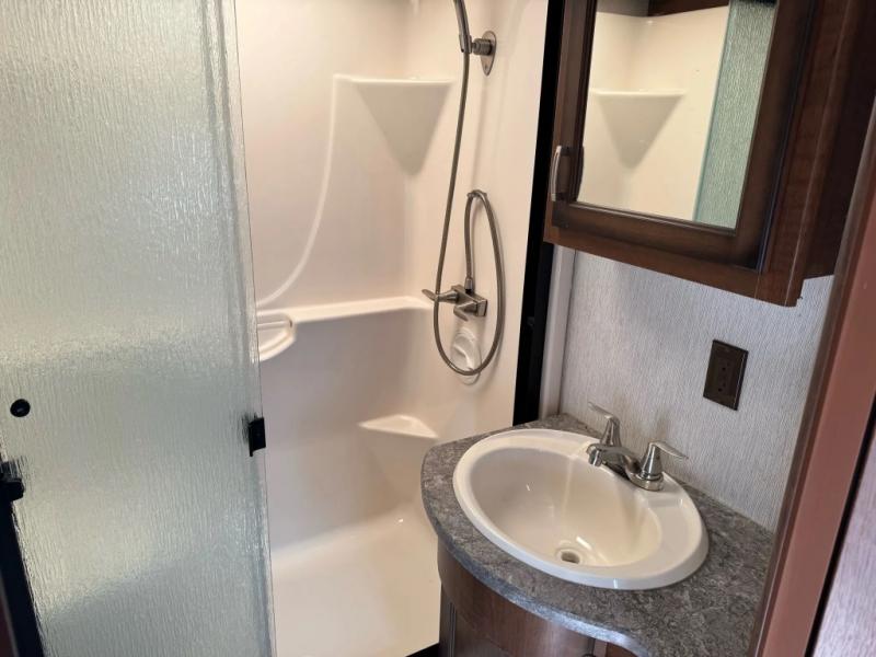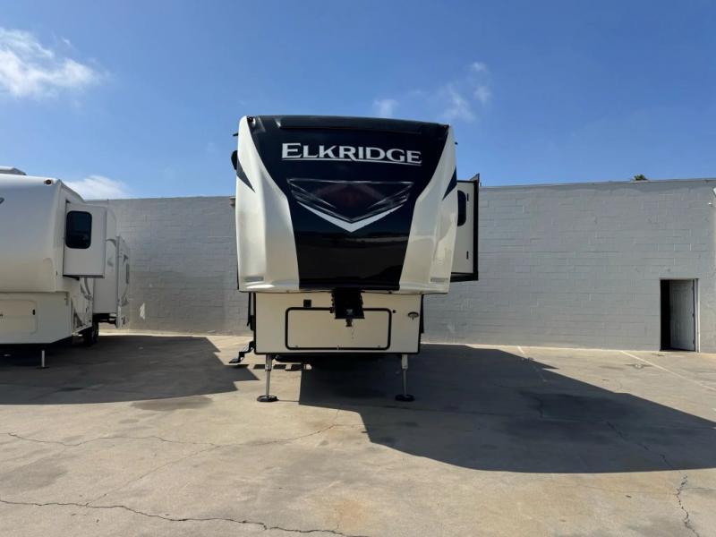 Increase your expectations for RV travel by indulging in an Elkridge fifth wheel. From the solidly built construction base with its welded aircraft-quality aluminum structure and one-piece walkable EPDM rubber roof, to the elegant exterior additions like the aerodynamic fiberglass front cap and deluxe power awning with LED lights, the Elkridge exudes its fine craftsmanship throughout every aspect of its design. The ceiling fan is a helpful feature for the warmer summer months because it will keep your guests refreshed with the cool breeze that it brings, and you will find many uses for the exterior shower with hot and cold water as you play outdoors or cook out at the campfire.