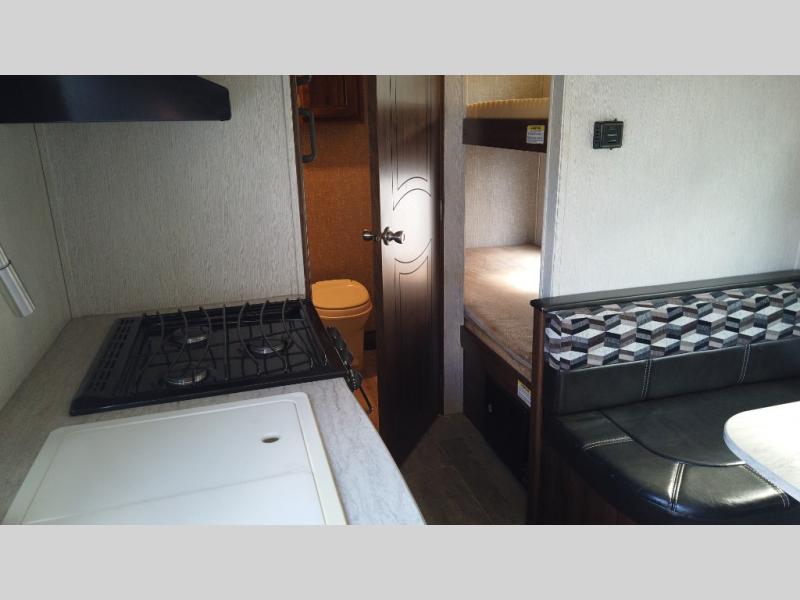 This Mallard Ultra Lite travel trailer is a dream come true for outdoor adventurers. With its set of bunk beds and queen-size bed, you have plenty of comfortable sleeping options to look forward to as you explore during the day, and as you work up an appetite while climbing mountains and hiking trails, you will certainly appreciate the amount of features that have been included in this trailer's kitchen, like the 3-burner range top and 6 cubic foot double-door refrigerator. If you still want more of the great outdoors after returning back to your trailer at night, you can spend your time outside underneath the electric awning with LED lights as you gather around the campfire and tell ghost stories.