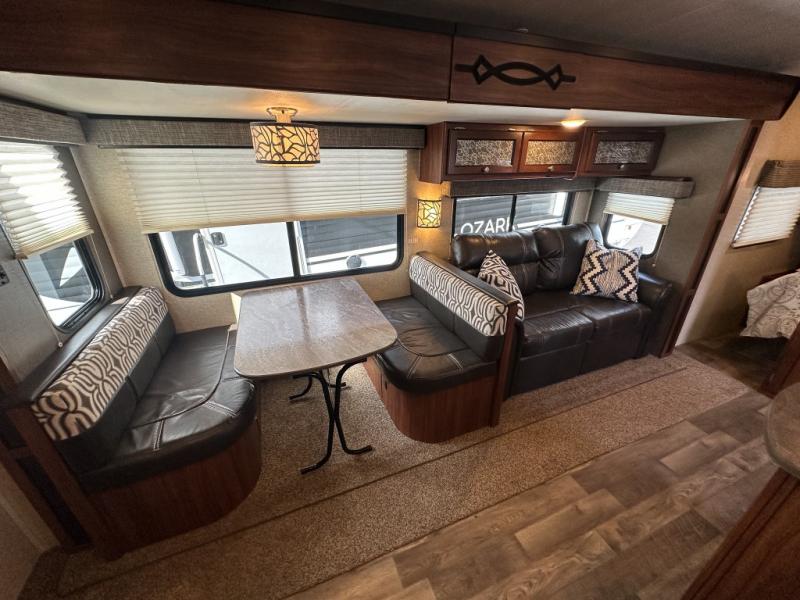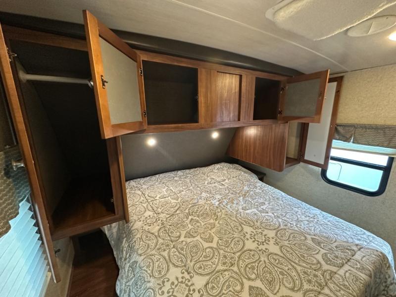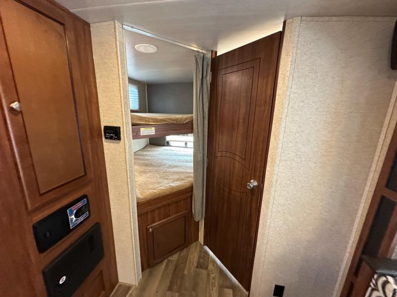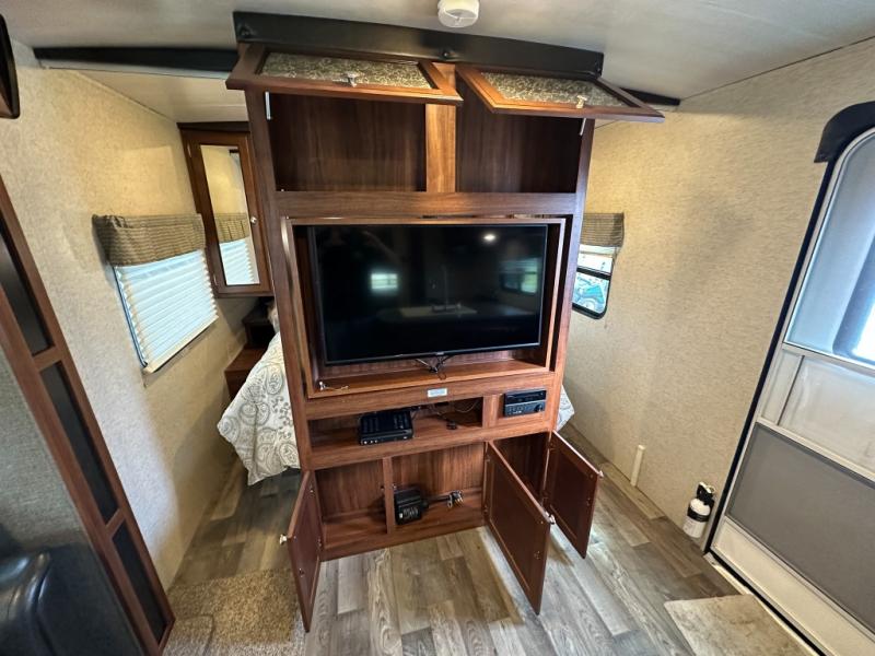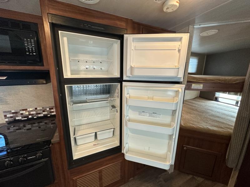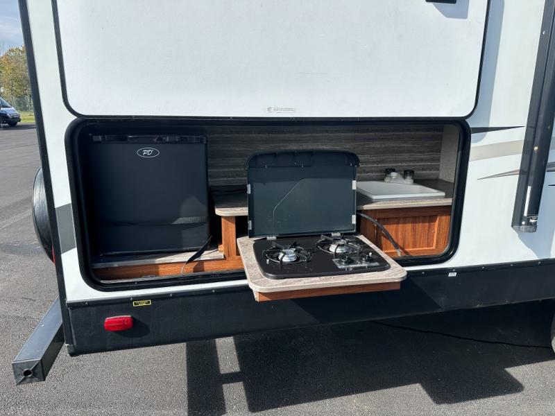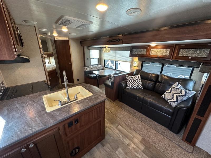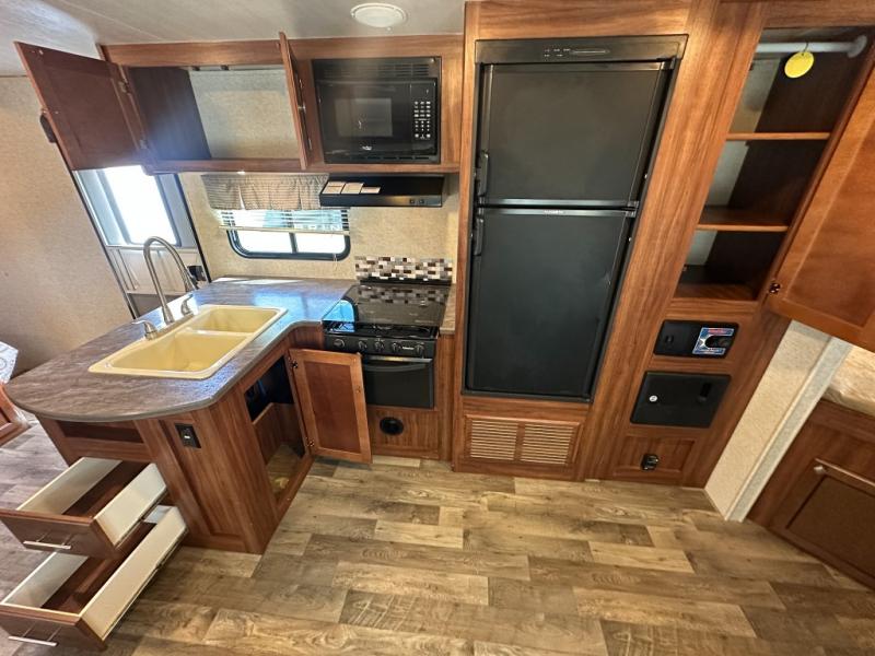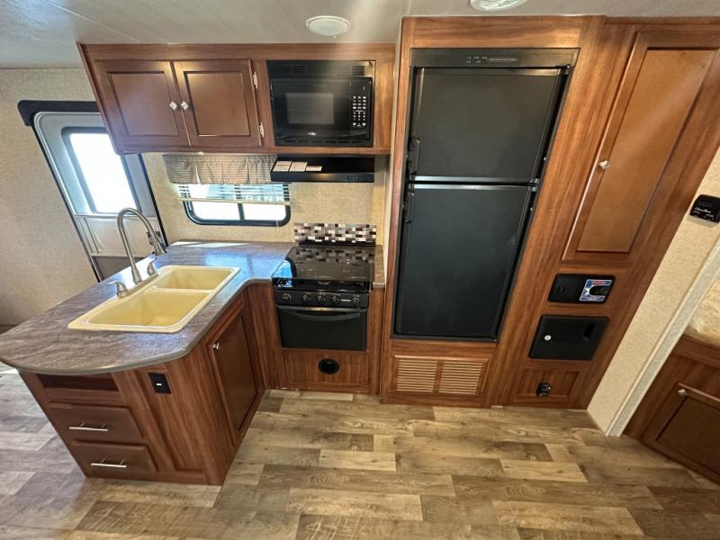 If you're looking for a trailer that will fit your family and your lifestyle, then you are looking for this Mallard Ultra Lite travel trailer. With its ability to sleep nine people, this trailer proves to be a huge asset for those who travel with large groups, and the set of double bunk beds, along with the queen-size bed in the private bedroom, ensure that everyone has their own place to call their own. You will also be impressed with the amount of kitchen features that have been included, like the double sink, 6 cubic foot double-door refrigerator, and even an outdoor kitchen!