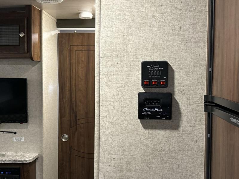 Step inside the main entry door and notice the swivel rockers inside along the rear back wall. There is an end table between for drinks and keys, plus a full width row of overhead cabinets for storage.