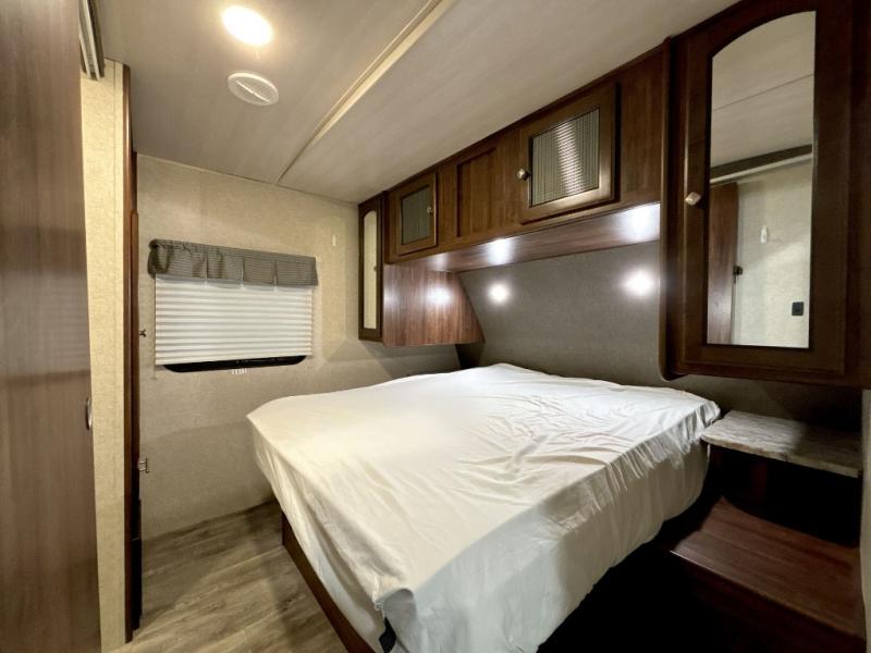 The front bedroom features its own private entry door from outside. There is a queen bed with large overhead storage cabinet, and nightstands with shirt wardrobes on both sides of the bed, plus so much more!