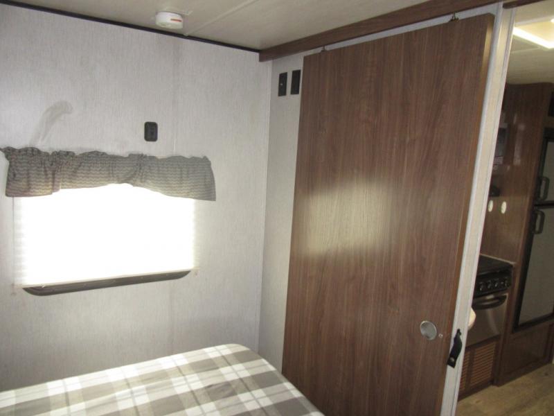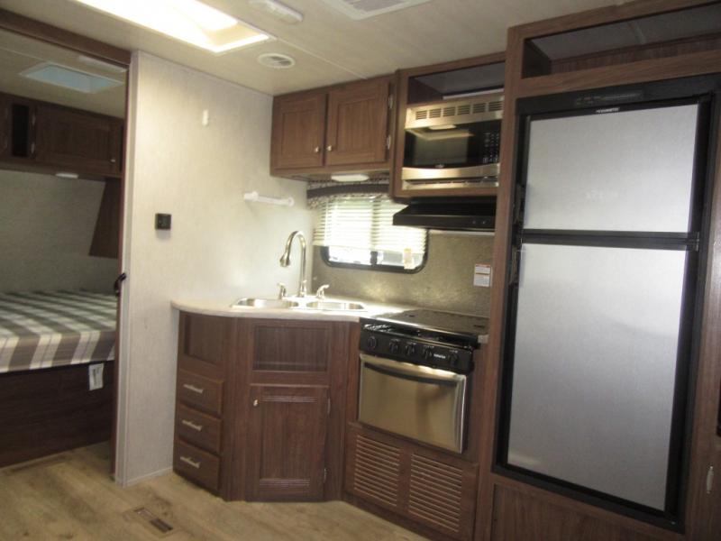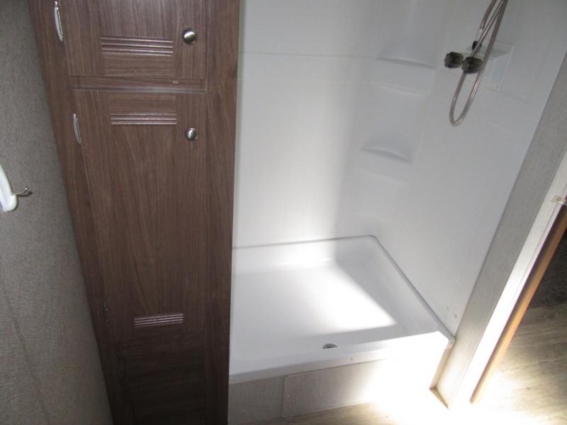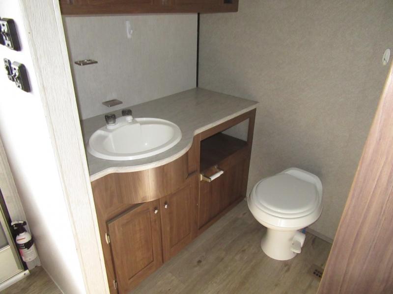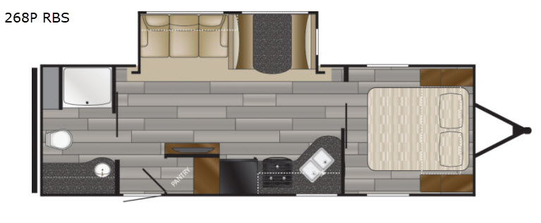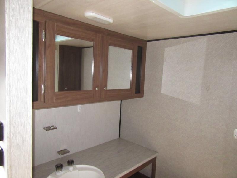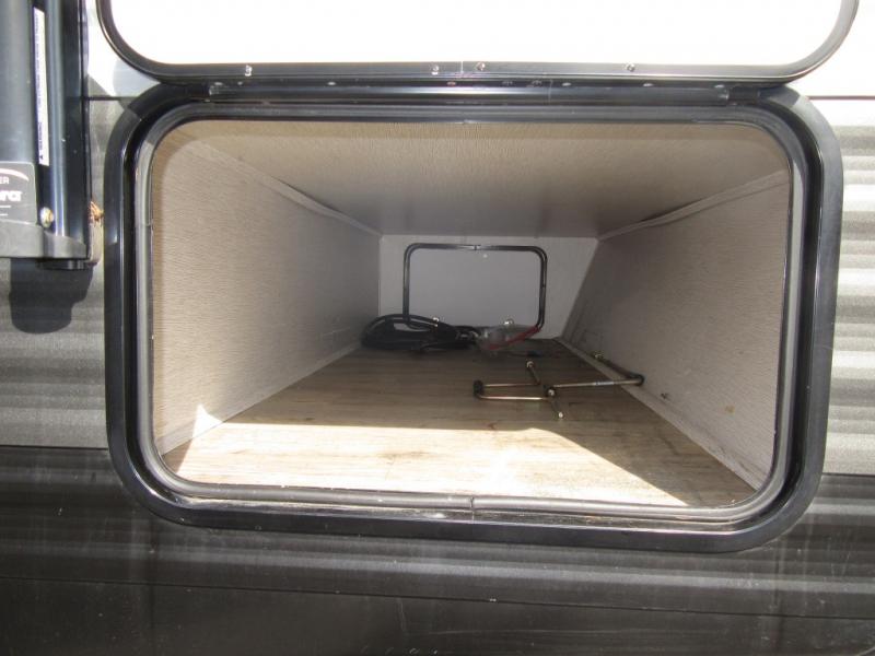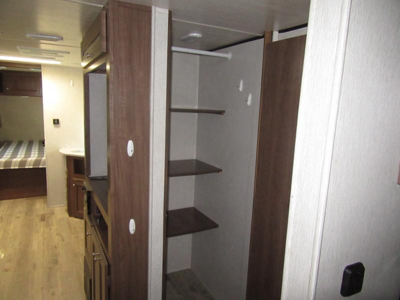 From the queen-size bed in the private bedroom to the rear bathroom, this Prowler travel trailer provides many home-like amenities you will love. As you prepare dinner for the family, you will find the walk-in pantry very handy for storing all of your favorite snacks and spices, and the single slide gives the main living area plenty of room for you to cook.