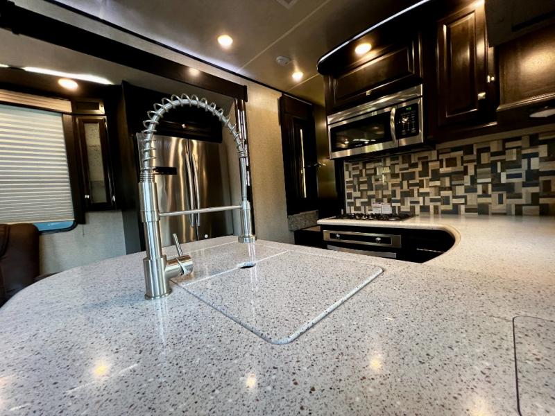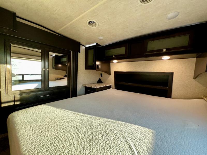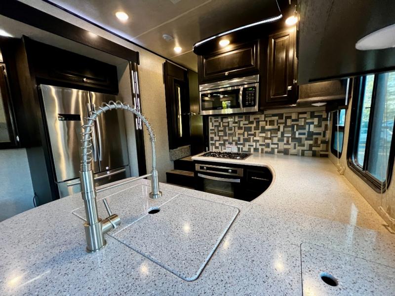 Whether you are taking your off-road toys to the sand dunes or to a competition, you will want a luxury Road Warrior toy hauler! These models are available with the Road Warrior Suite Package which includes items such as hardwood cabinet doors and drawers, solid surface counter tops, LED lighting, plus an exterior stereo with HDMI and two speakers. The Ultimate Warrior Package has a heated and enclosed underbelly, a universal docking station, a rear garage screen, plus a painted fiberglass front cap and more!