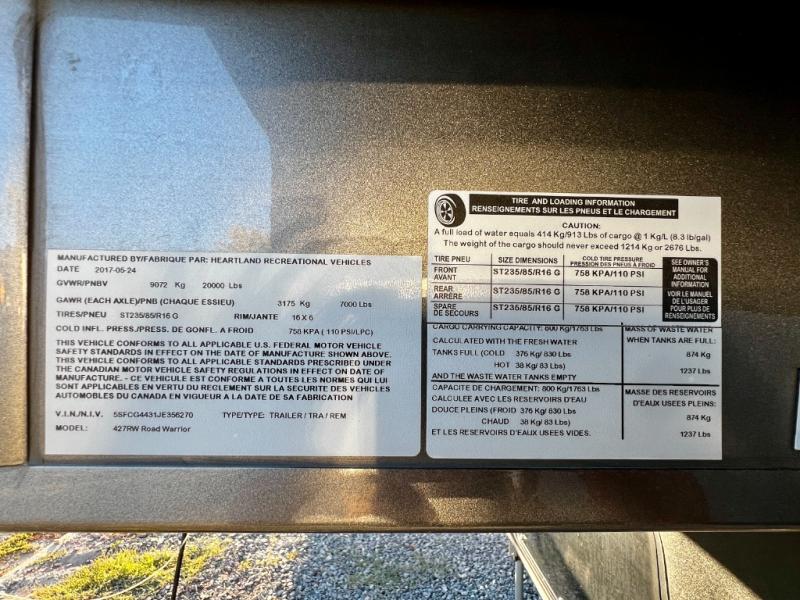 Used 2018 Heartland Road Warrior 427 Toy Hauler Fifth Wheel