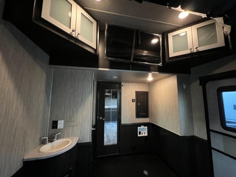 When you are ready for your next vacation to include time outdoors riding the trails and then coming back to the comfort of your home away from home, you will want this double slide out Road Warrior 427 toy hauler! The 12.5' garage has enough room for a few dirt bikes or even an ATV. With the half bathroom in the garage you can easily clean up before heading inside. After dinner come enjoy sitting outside at the patio while watching a little TV at the optional exterior 40" TV. Your kids can have their own space up in the loft, and mom and dad can enjoy the spacious master bedroom with a king bed!