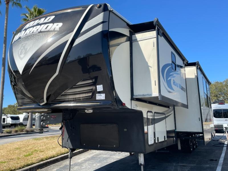 If you’re looking for a spacious, well-designed fifth wheel toy hauler that feels more like a home than a camper, this pre-owned Heartland Road Warrior 427RW from LazyDays powered by Campers Inn is a must-see. Contact us today to learn more or schedule a walkthrough.