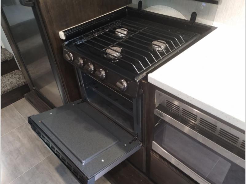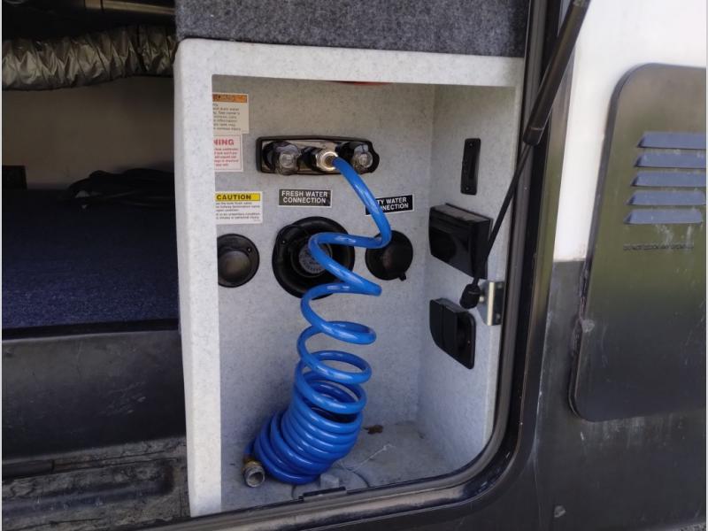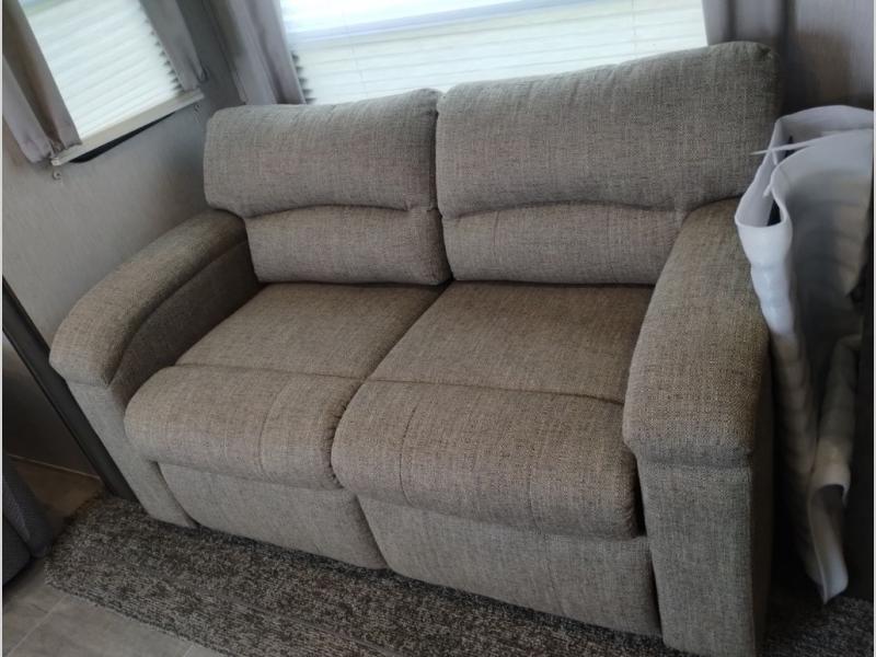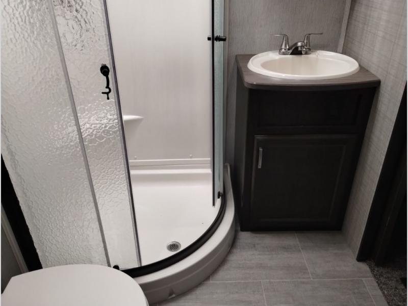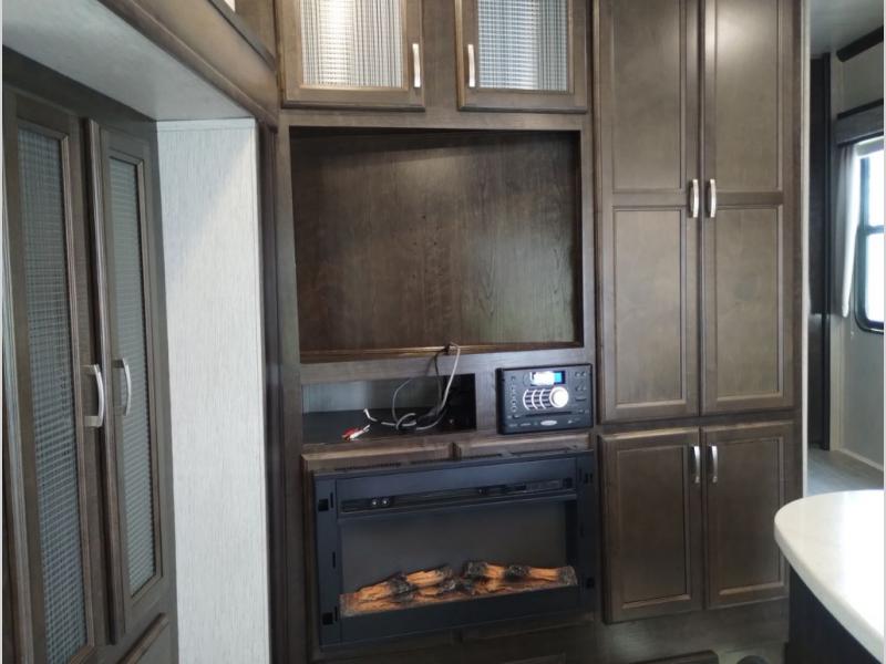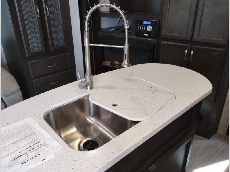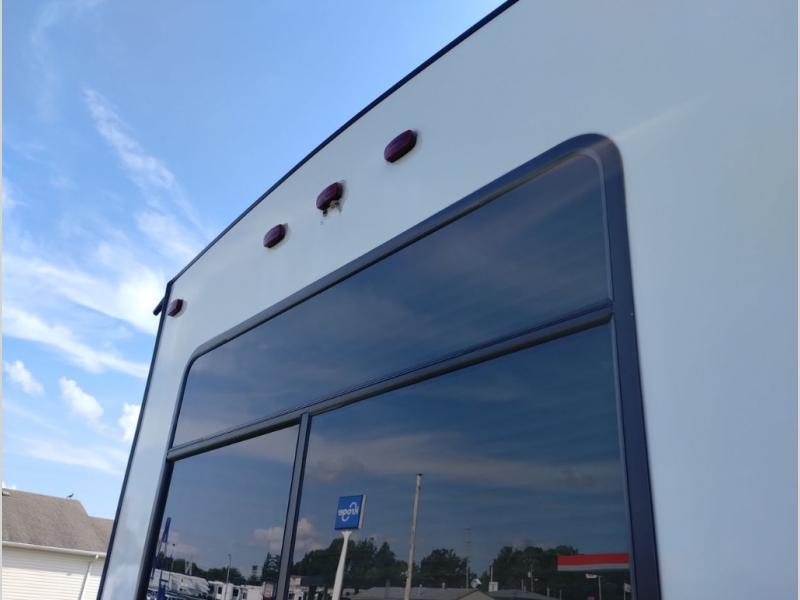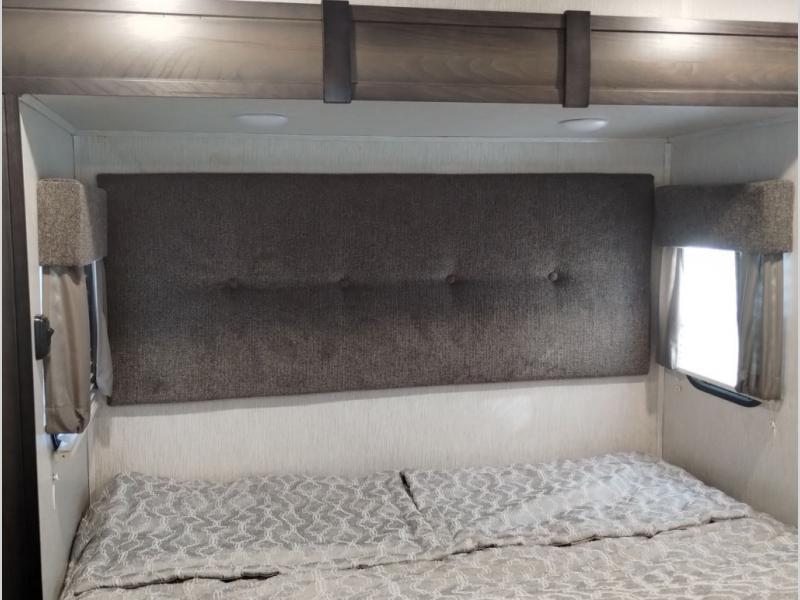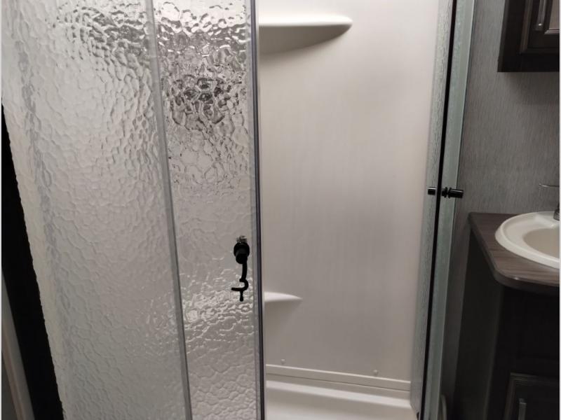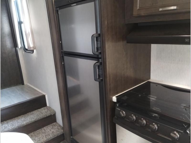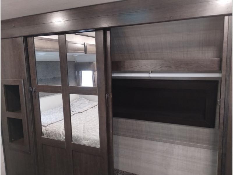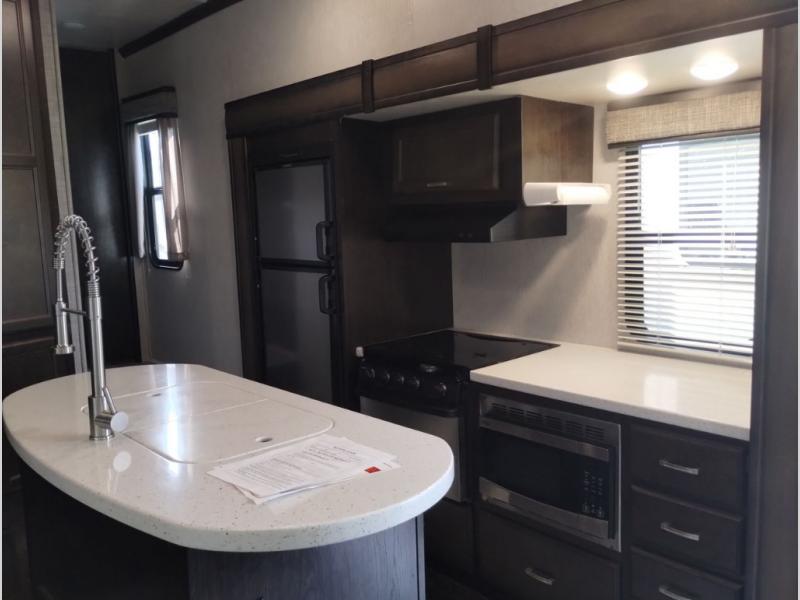 This Sundance mid-profile fifth wheel is a great couples coach which provides a roomy interior that you are sure to enjoy. The triple slides are all flush mounted slides so there is no bump on the floor to trip over when your slides are fully extended. You will enjoy a complete kitchen including a handy island where your sink is located, and stainless steel appliances as well. There is plenty of storage throughout with a large closet in the master bedroom, a pantry, plus overhead cabinets in the kitchen area as well as across the entire rear of the unit making it easy to keep things tucked away when not in use.