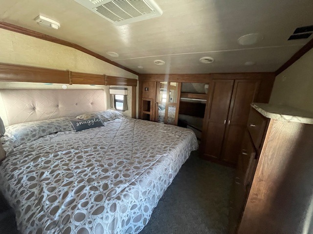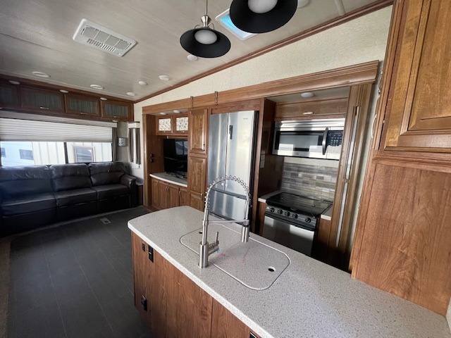 After your afternoon hiking trip in the woods then come back to the comfort of your quad slide out Sundance Full-Profile 3710MB fifth wheel. The second bedroom is ideal for a guest or two or you can use this room as a den. Enjoy your meals at the u-dinette or you can even relax here and play a card game or two. In the spacious living area you can enjoy watching a little TV or visiting with your family. The front bedroom has been prepped for a washer and dryer so now you can keep up with your laundry while you are away from home.