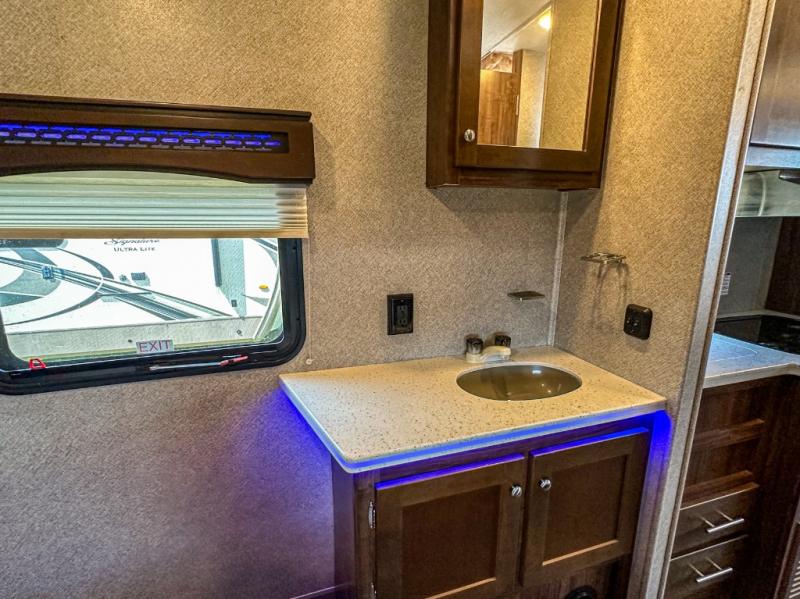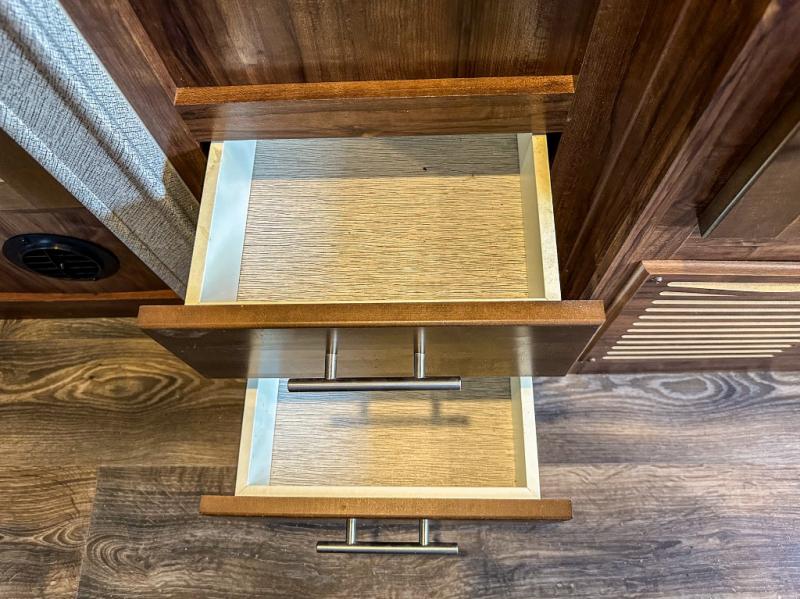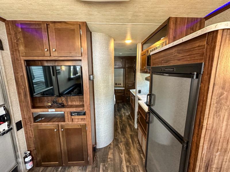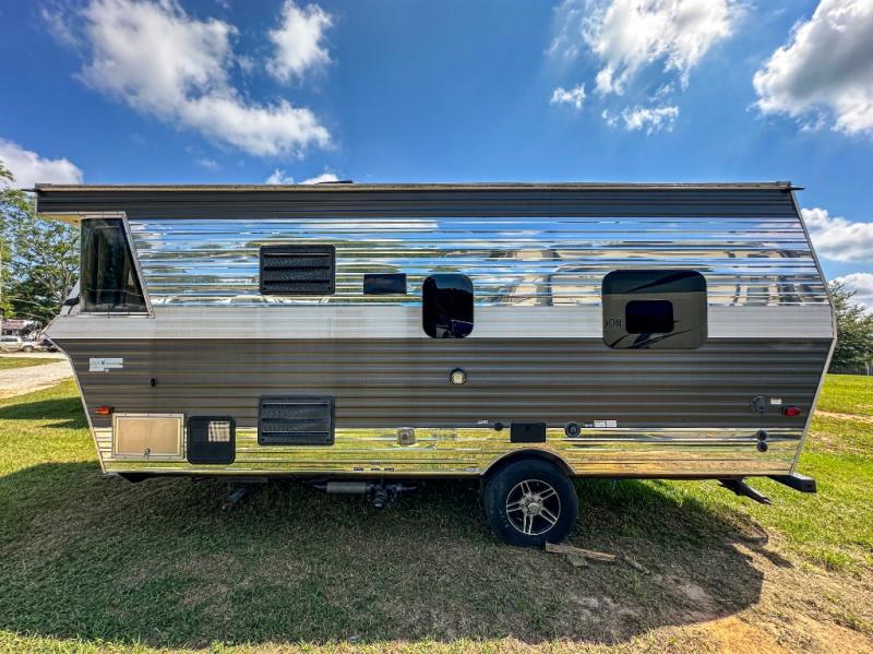 For the kid inside of you who wants to bring back your memories of camping, come choose the retro style Terry Classic by Heartland RV. These models are lightweight and can be towed with just about any vehicle. Outside you will find baggage doors with magnet stays so now it is even easier to load up your camping gear! Along the front there is a molded Lexan window which just adds to the retro appeal. Inside you will enjoy LED ceiling lights with cove surround blue accent lights and in the living room there is a 32” LED TV. Throughout the kitchen area you will find solid surface counter tops with LED lighted edges, a 6 cu. ft. refrigerator, stainless steel appliances, plus so much more!