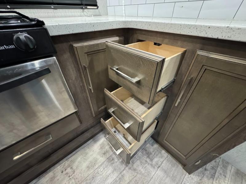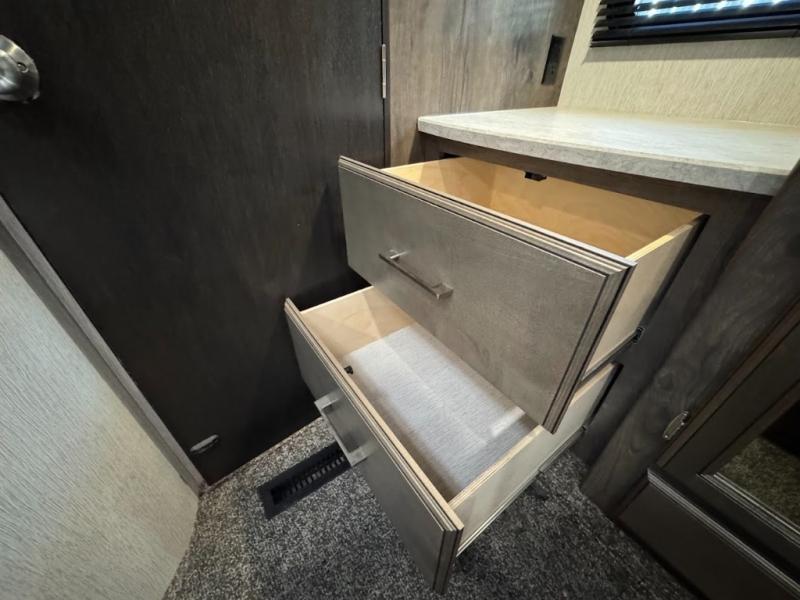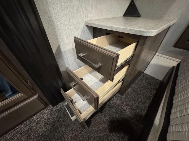 Get ready to have plenty of fun that will last all weekend long with any of the Heartland Torque toy hauler fifth wheels. You can easily fuel up your toys at the outside fuel station. In the garage, you will find that the rubberized floor is fuel and oil resistant. In the kitchen, there are solid surface countertops and a high rise kitchen pull-out faucet. You can relax at the residential furniture with built-in recliners, and throughout each model, there is a high end Ashlyn cabinetry as well as high-end carpet and cold/crack resistant flooring. The SS Package features a painted front cap, exclusive SS graphics, solid surface countertop in the kitchen only, and aluminum steps.