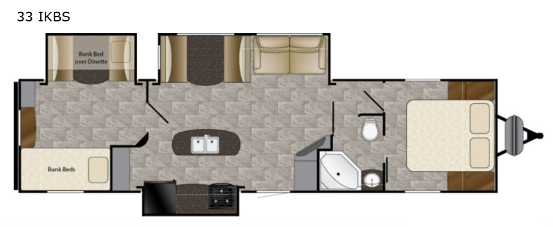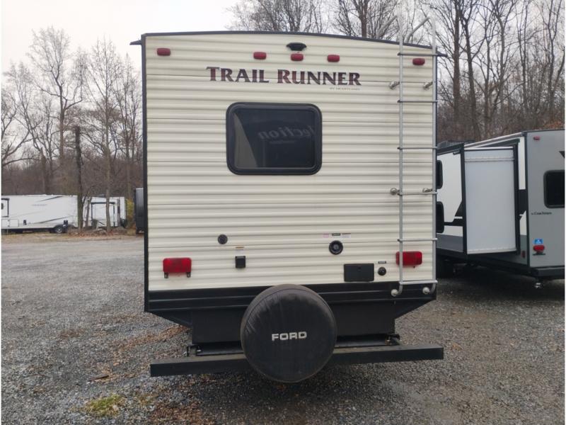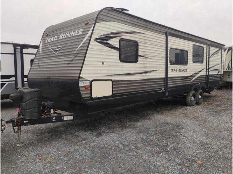 Are you ready to camp in luxury? Well, come step inside this Trail Runner 33IKBS travel trailer and plan to be wowed with the conveniences throughout. Your kids will enjoy their own space with the rear bunkhouse. Here there is a dinette with a bunk above and along the opposite side of the room you will find a set of bunk beds. In the combined kitchen and living area there are dual opposing slide outs, with plenty of room to move around as you fix your meals or you can plan to relax at the sofa or dinette. The island features a sink plus extra counter space where you can easily work. Get ready to head on out to your favorite campground with this travel trailer in tow!