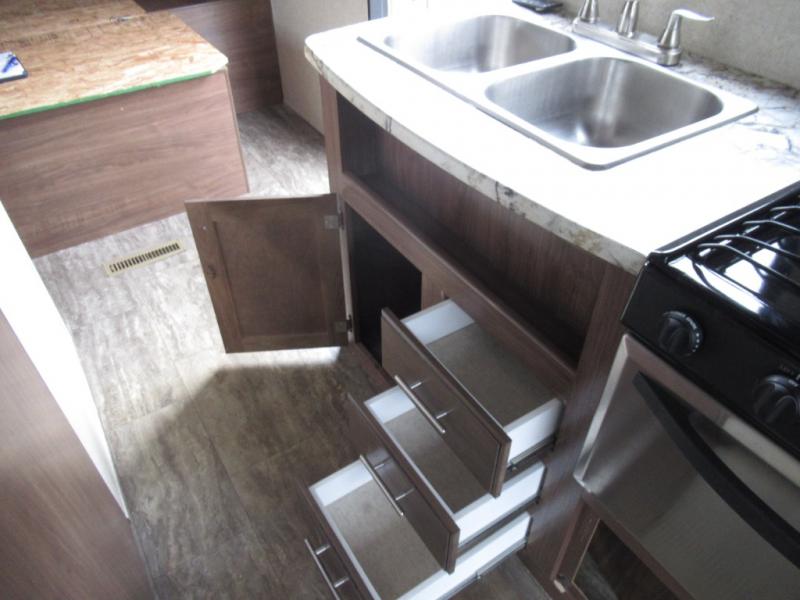 The Trail Runner SLE is lightweight and easy to tow behind almost any vehicle. Along the outside there is an aluminum front and an aerodynamic radius front profile. There are also upgraded Dexter axles with electric brakes, and tinted safety glass windows. In the evening you may even want to sit outside and listen to music at the two LED outside speakers. Inside there is a USB charging port for your electronic devices and an AM/FM/CD/DVD player with Bluetooth capability. In the bedroom you can get a good night's rest on the queen bed with Innerspring mattress plus there is under-bed storage. What are you waiting for? Come choose your Trail Runner SLE travel trailer today!