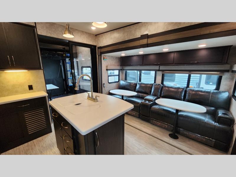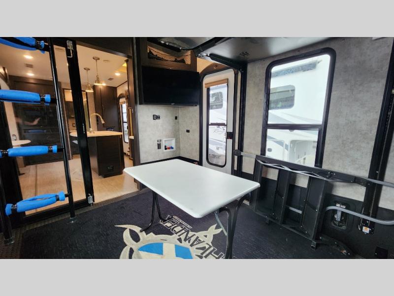 With any Highland Ridge Highlander toy hauler travel trailer you will find security and satisfaction with every detail. From the industry leading PVC roofing with a 10 year 100% replacement warranty, and 42" deep flush floor galley slide to each model being Zero Degree tested to withstand the harsh environment, and Navistar proving grounds tested for durability. The heated and enclosed underbelly offers a traveling experience in any weather, while the USB/12V charging port keeps your electronics charged the whole trip. It's time to stop compromising, come get a new Highlander today!