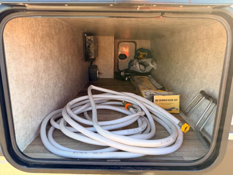 There is exterior storage for your outdoor gear, and an awning for shade, plus much more to see outside and inside!