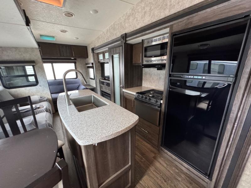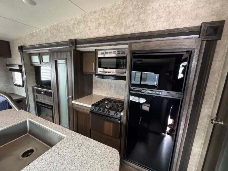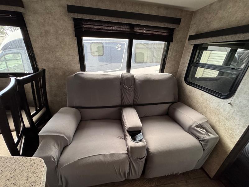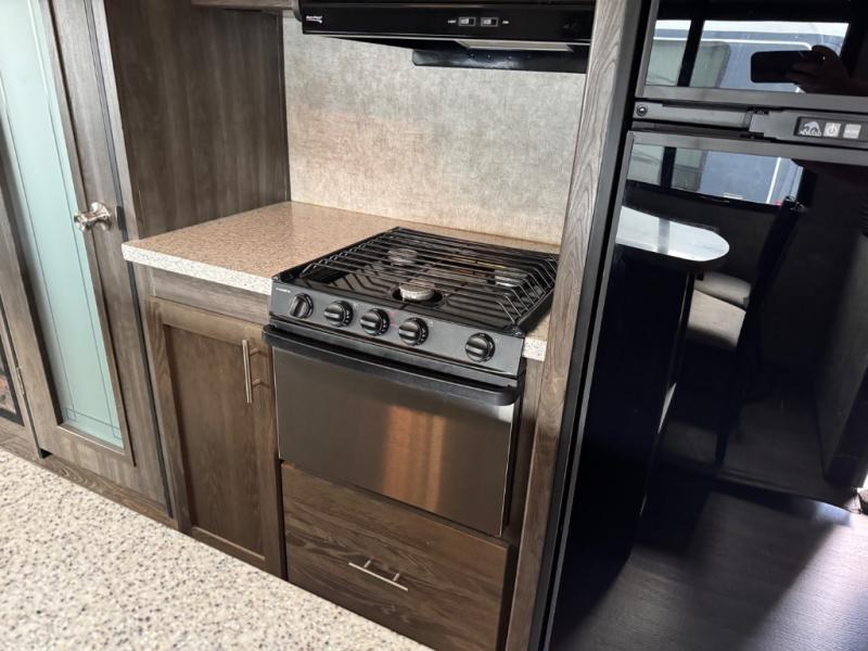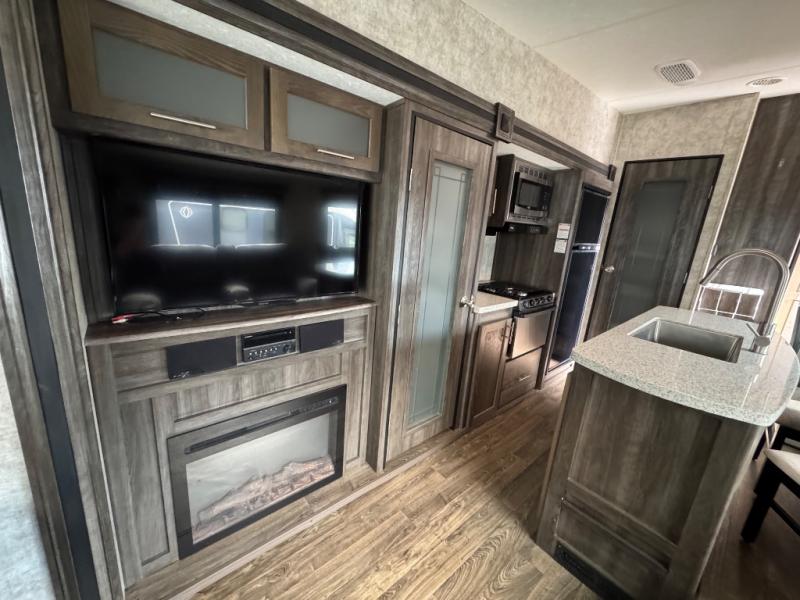 You will love all the conveniences that this Highland Ridge Open Range Light model LF291RLS fifth wheel has to offer you and your family. You can relax inside on the theater seats and sofa while watching movies and shows on the 39" LED TV, or play games with friends at the booth dinette. A kitchen island provides additional counter space for preparing and serving meals, while the sink provides easy clean up. You will be amazed at all the storage throughout each room for all your camping items. The dual entry bath allows access from the hallway or the front bedroom. The front bedroom offers you a private space to get away or sleep in comfort, plus there are many more conveniences inside and outside!