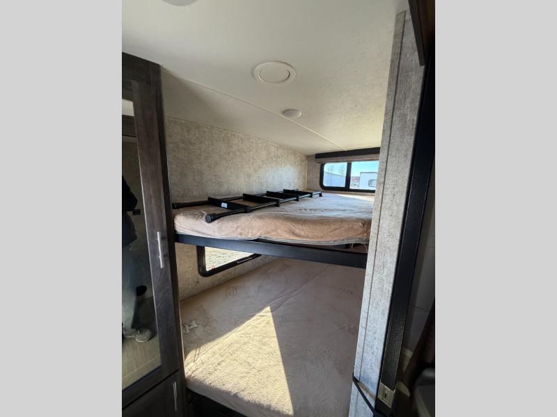 You are going to love camping in this Open Range Ultra Lite bunkhouse travel trailer model UT2510BH, by Highland Ridge RV. This unit features plenty of room for your entire family with double size bunk beds, plus double entry doors make it easy to load up and unpack at home, as well as allowing easy access in and out when you are camping.
