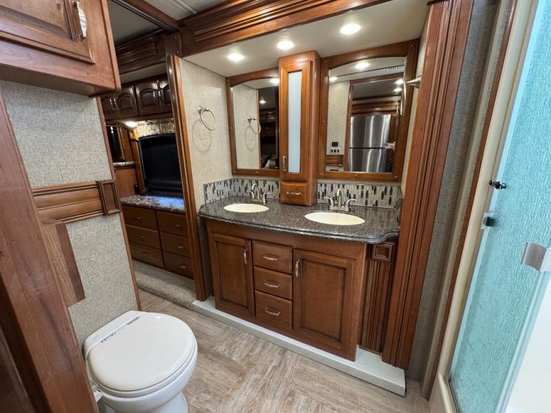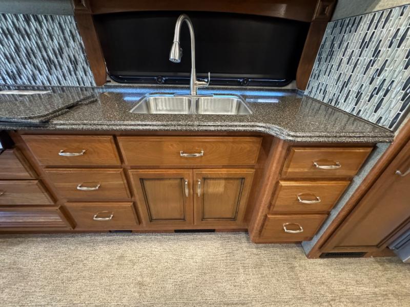 Come load up your family and set out to new adventures with this Navigator 38F class A motor home. As you enter this model you will notice all of the space throughout with the quad slide outs. In the living area there is an L-sofa where you can entertain a few guests plus you will find a lounge chairs, a 49" LED TV and an electric fireplace. You can enter the bathroom from either the hallway or from the bedroom. Here you will find two sinks which makes it even easier to get ready for the day. The rear bedroom features a king Serenity Series bed, a 43" LED TV, a full length closet, plus a stackable washer/dryer, and so much more!