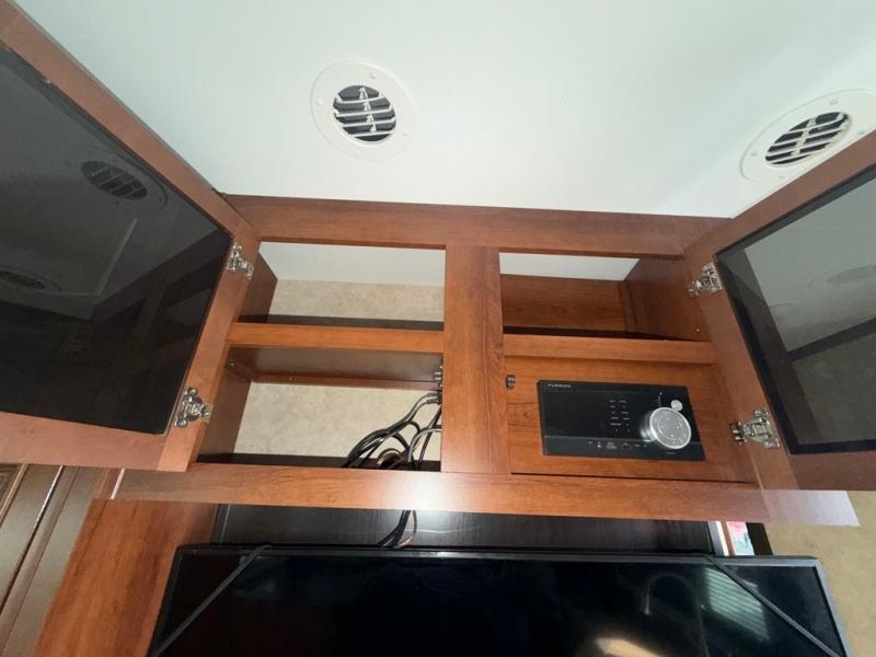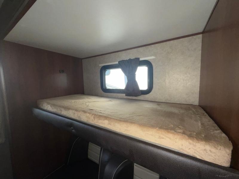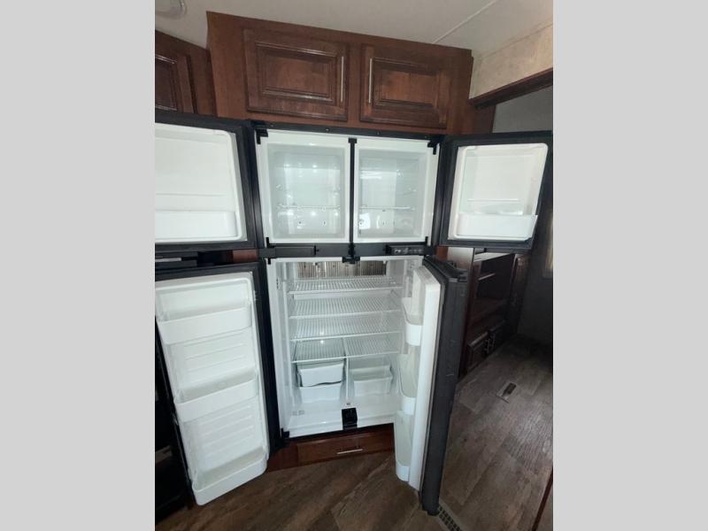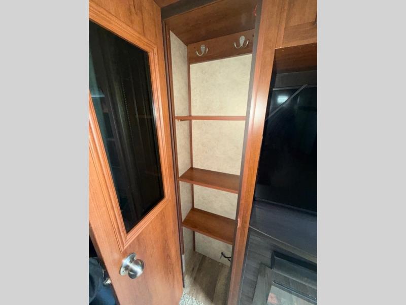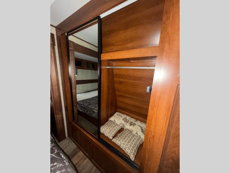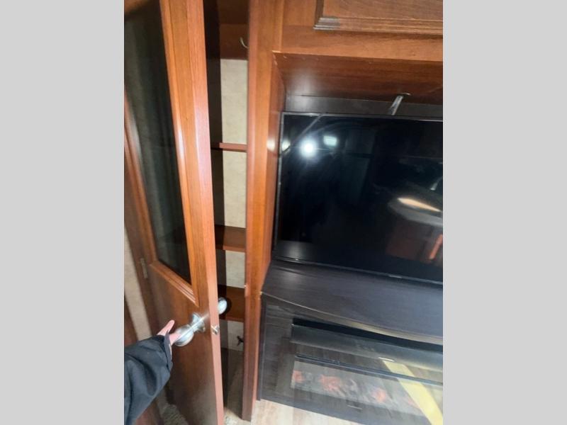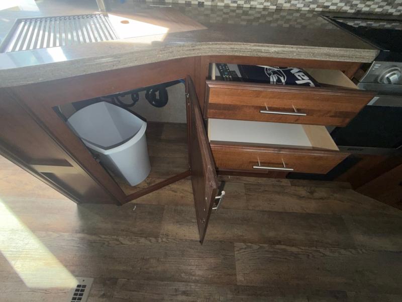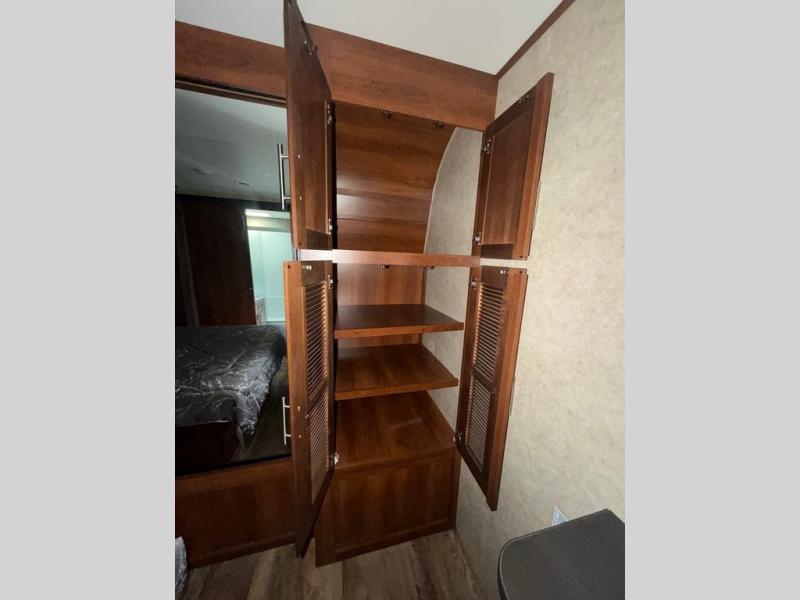 If you like to travel in luxury with your whole family, take a step inside this Eagle travel trailer to find a rear bunkhouse and a front master bedroom. Model 333BHOK provides the children a place to call their own in the bunkhouse with two bunk beds and gamer chairs, plus more! The owner will enjoy the master bedroom with plenty of storage and a closet prepped for a washer/dryer on the opposite side of the trailer. Everyone can come together to watch TV, play games, and cook. There is plenty of room for your dry goods in the dual pantries, and the LED fireplace will keep you cozy on those chilly camping evenings. If you enjoy cooking in the great outdoors, the outside kitchen might be one of your favorite hangouts. Now imagine your whole family making memories with this Eagle travel trailer everywhere you stop!
